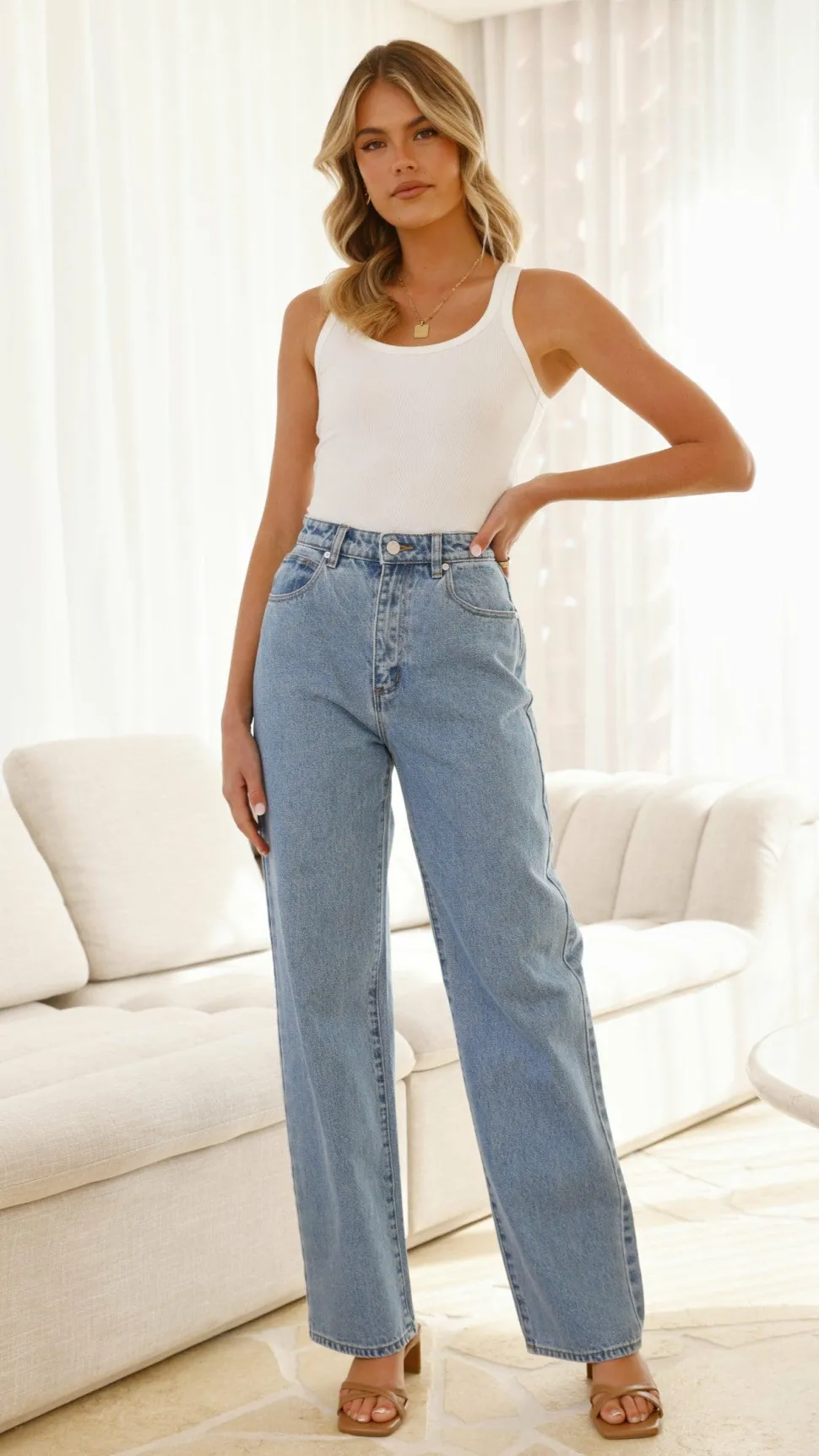 Get the look! Rotate Rib Singlet – White & Yahara Heel – Toffee