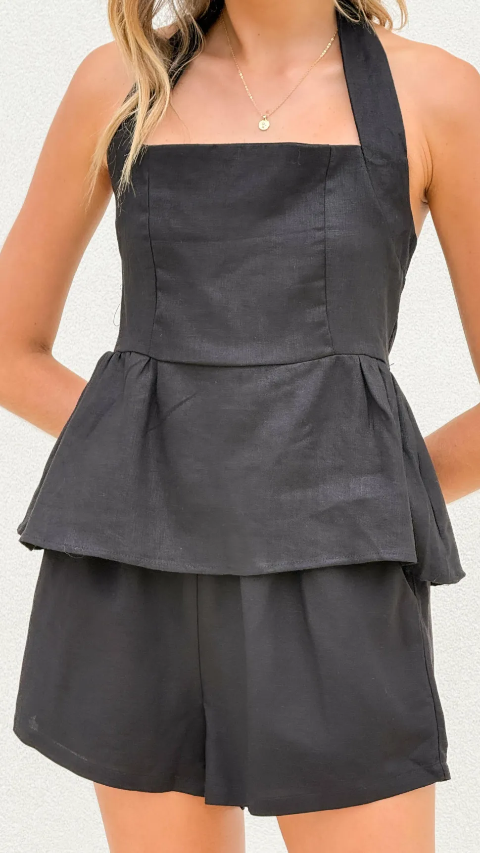 Get the look! Gretal Slide – Tan &Aviana Halter Top – Black