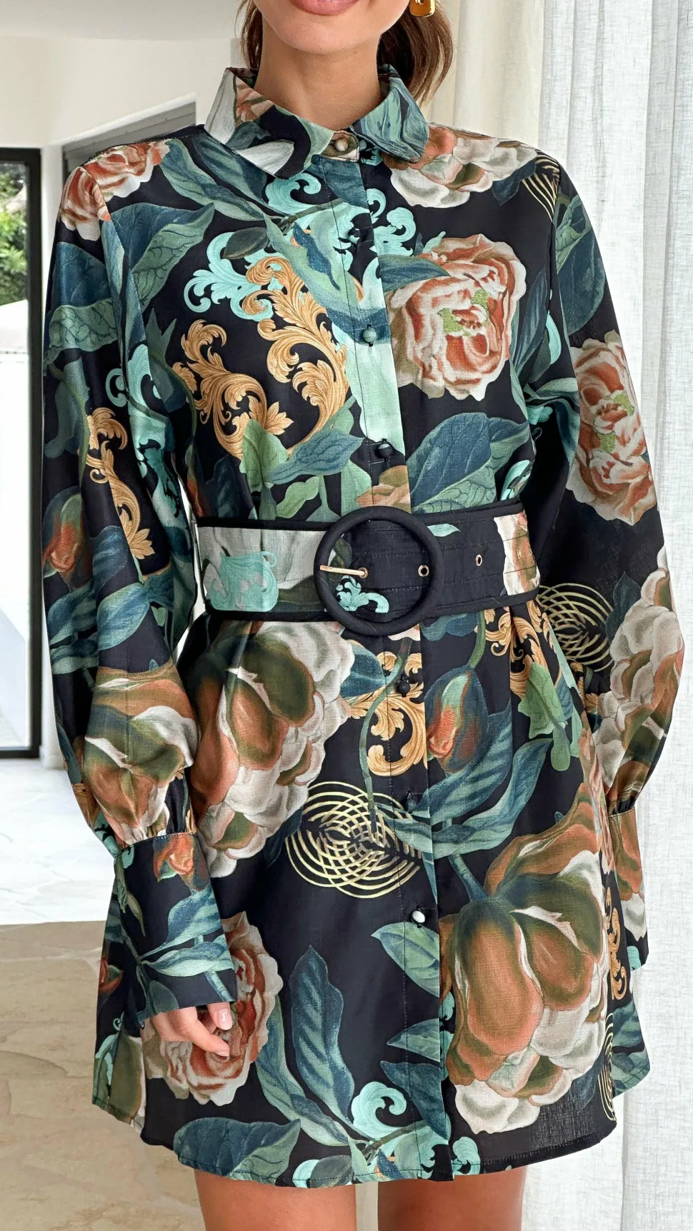 – Long balloon sleeve, button up cuff