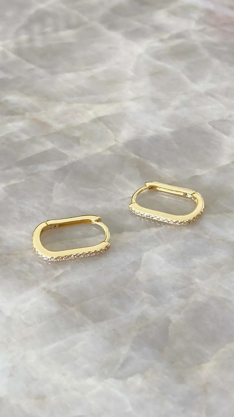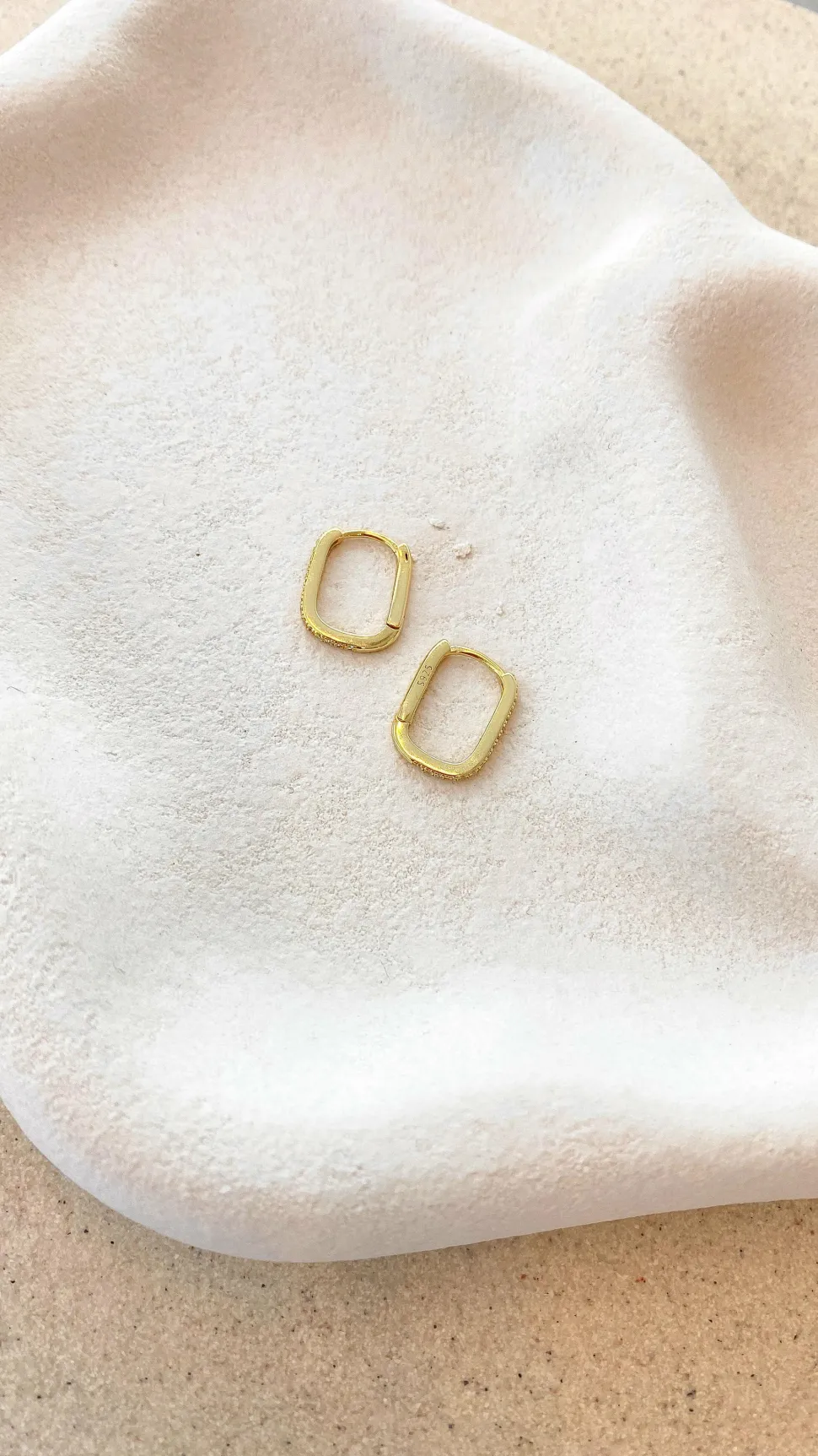 Dress up your outfit with the Ashlyn Sleepers, featuring gold oval hoops with gemstone details.