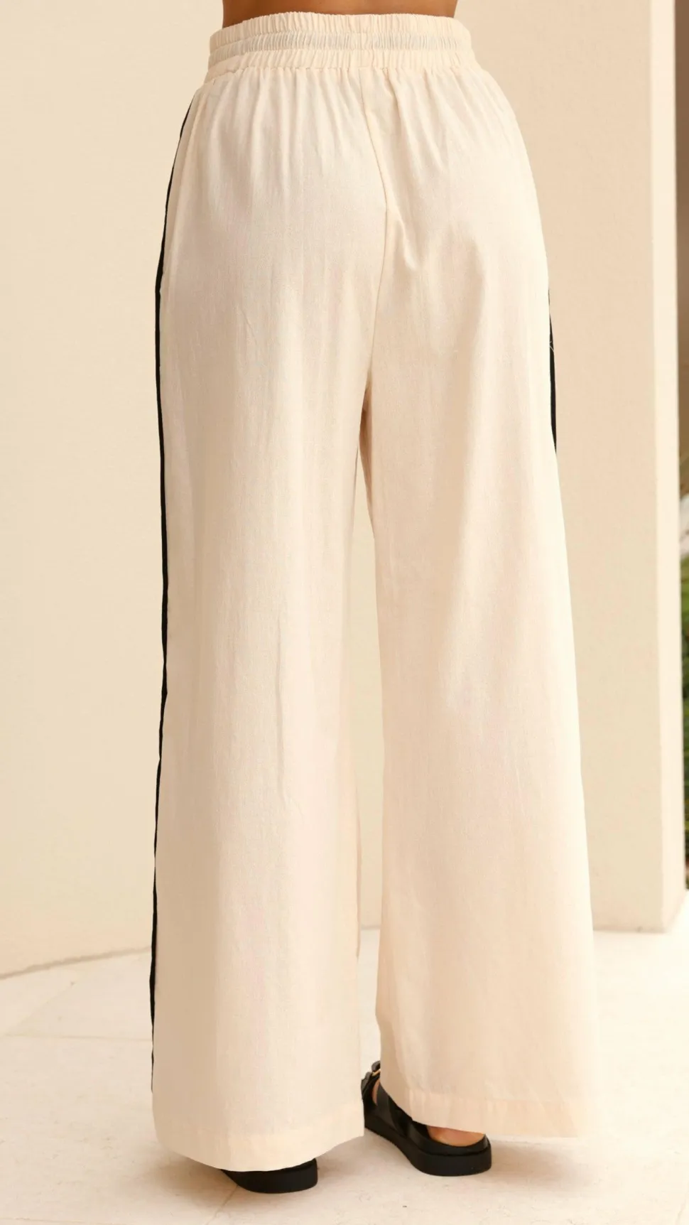 Get the look! Basima Tie Shirt – Beige / Black & Amylee Slide – Black