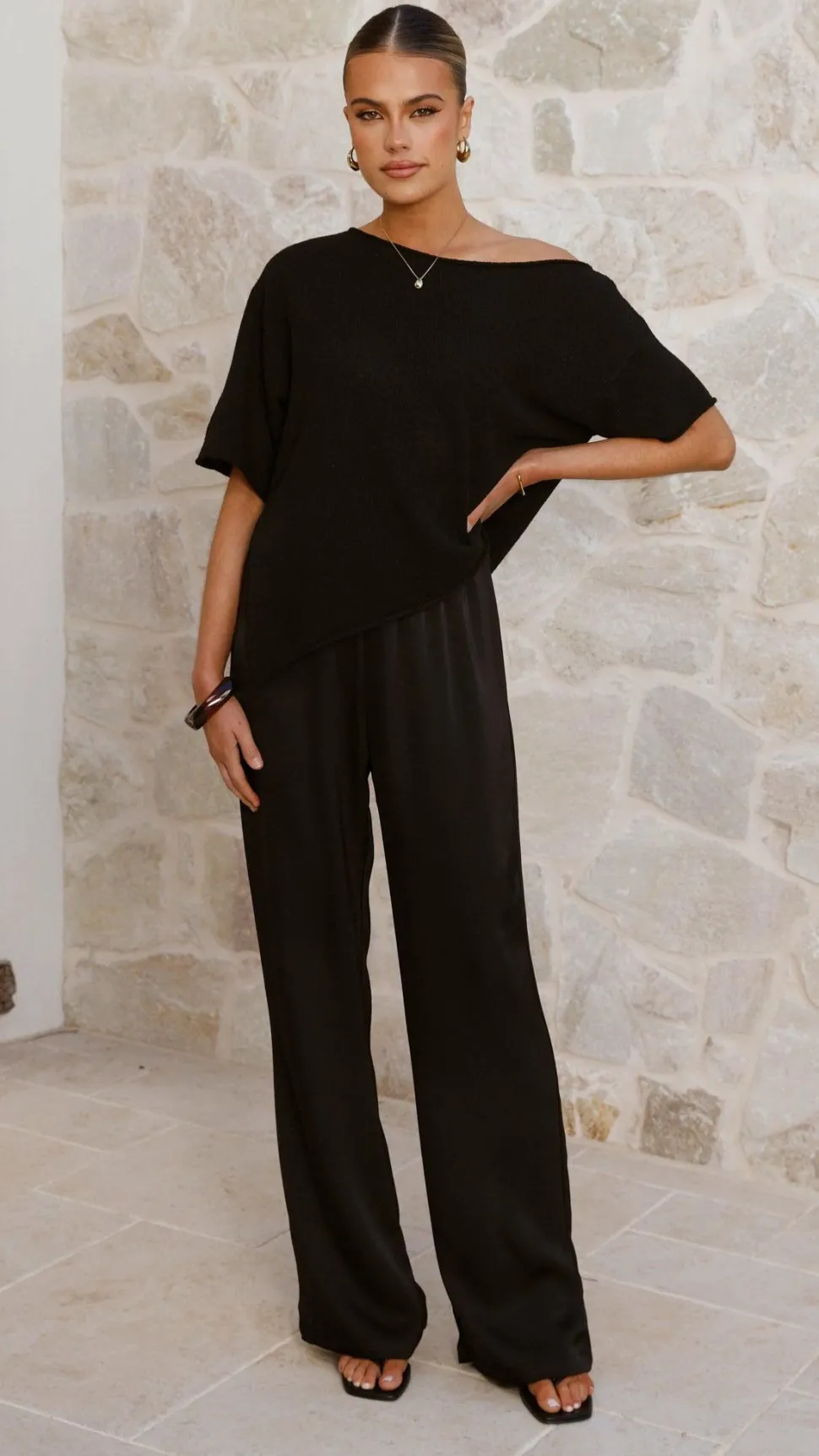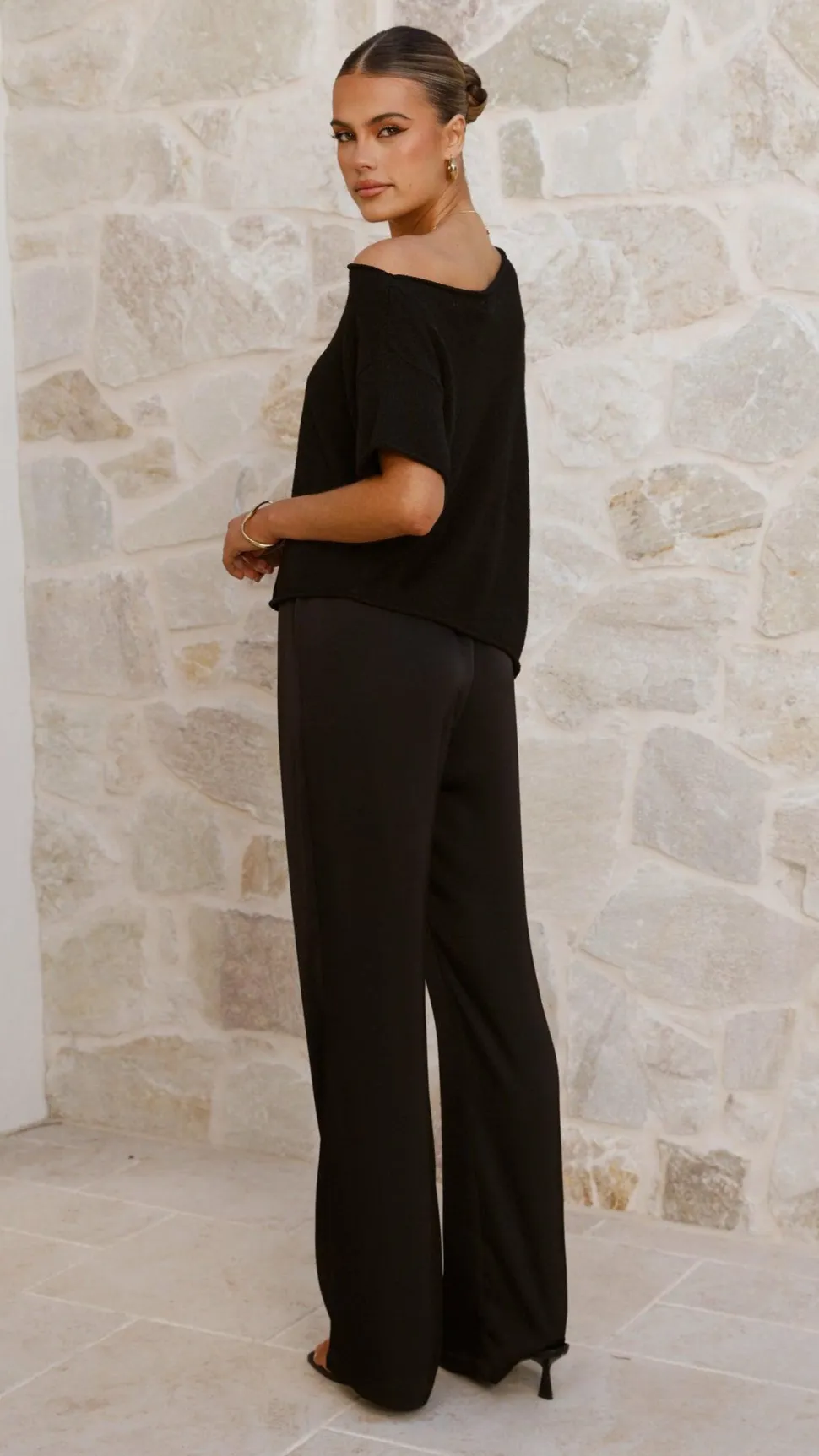 Get the look! Imogen Button Pants – Black & Xami Heel – Black