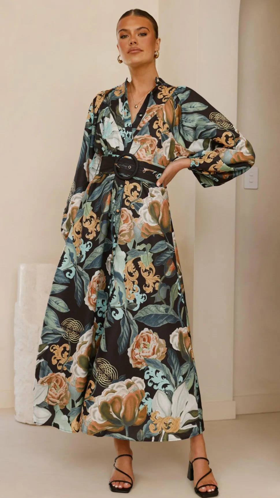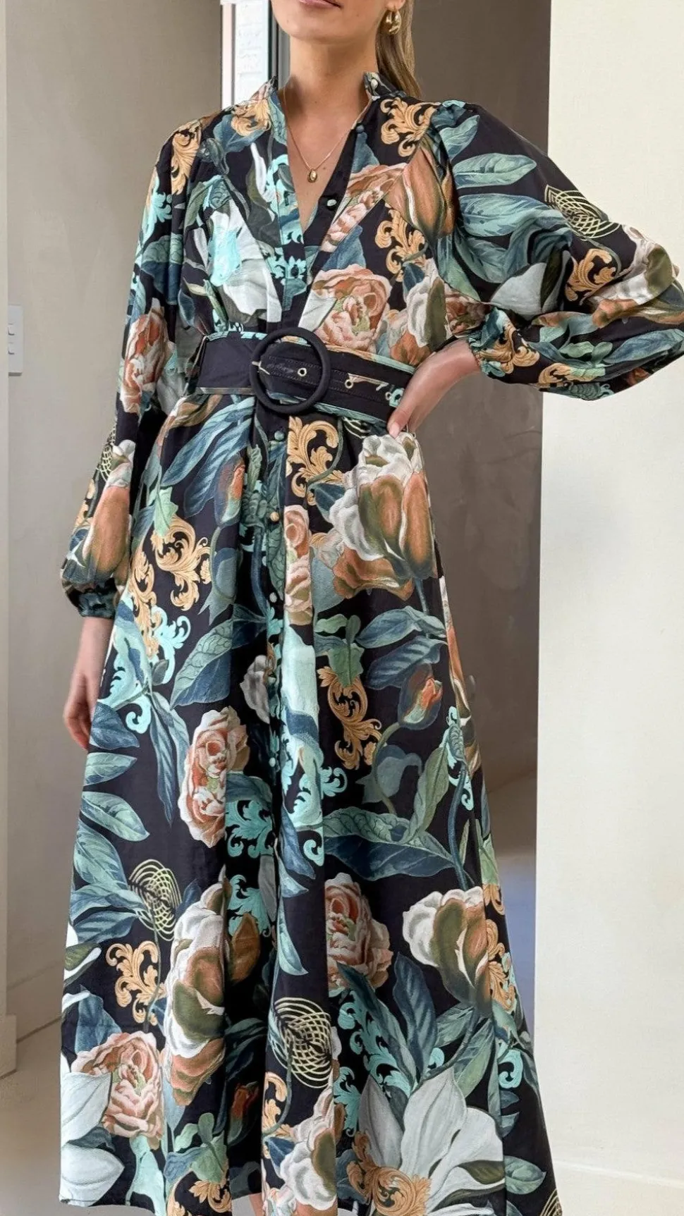 – Long balloon sleeves with elastic cuffs