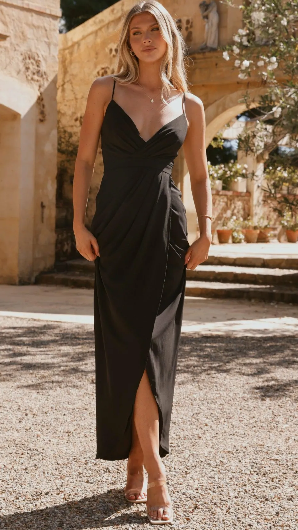 “Want to mix and match dresses? The following styles match this colour:” Charlize Maxi Dress – Black, Charlotte Draped Maxi Dress -Black, Clara One Shoulder Maxi Dress – Black, Emma One Sleeve Maxi Dress – Black, Genevieve Boat Neck Maxi Dress – Black, Pamela V Neck Maxi Dress – Black