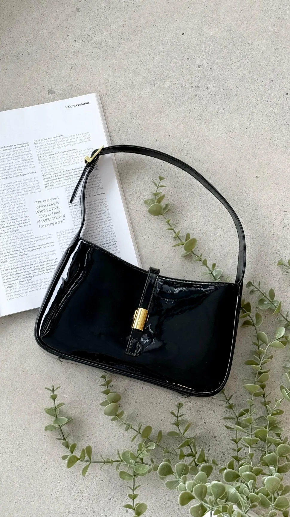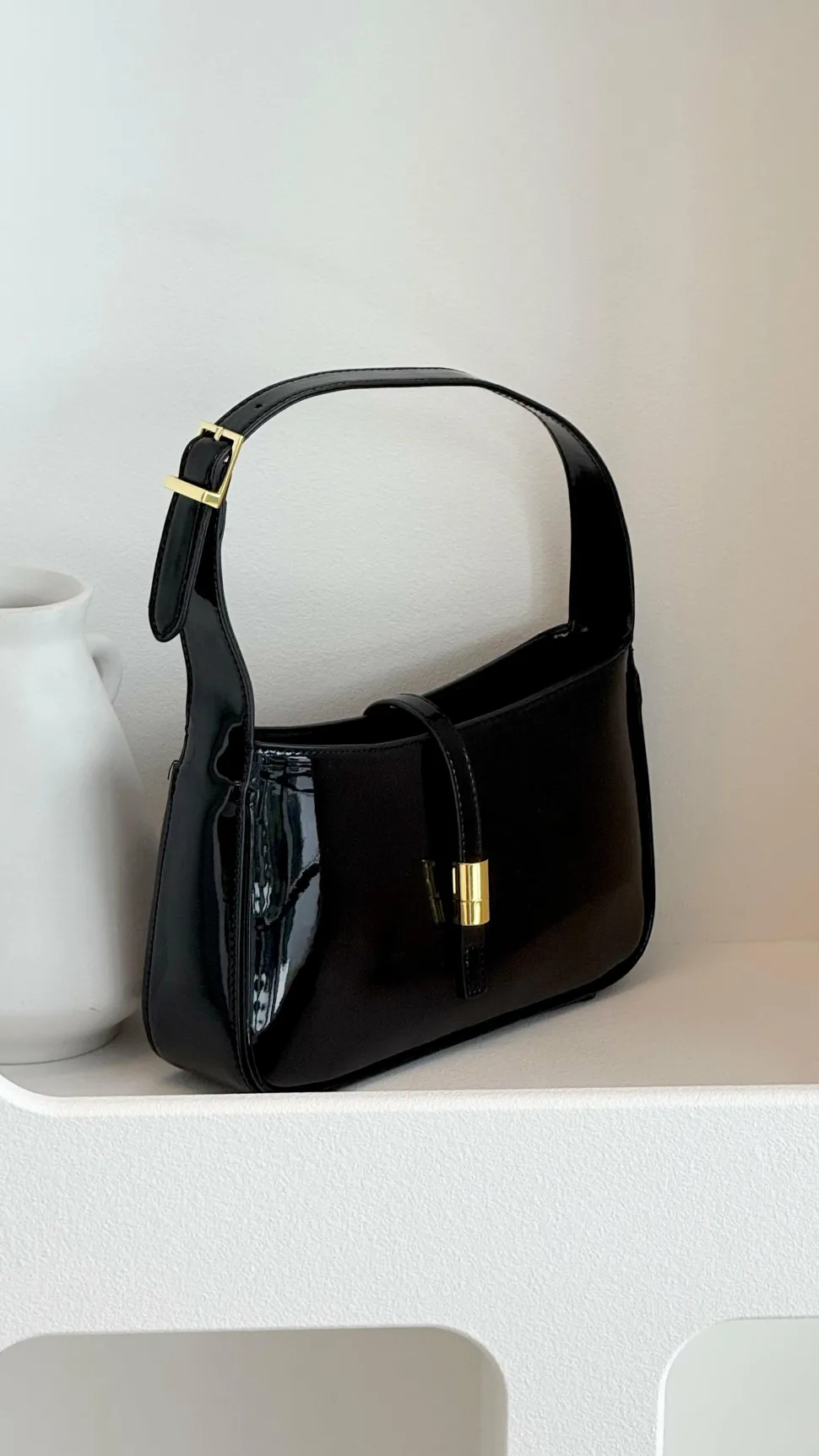 - structured, adjustable shoulder strap with gold buckle detailing