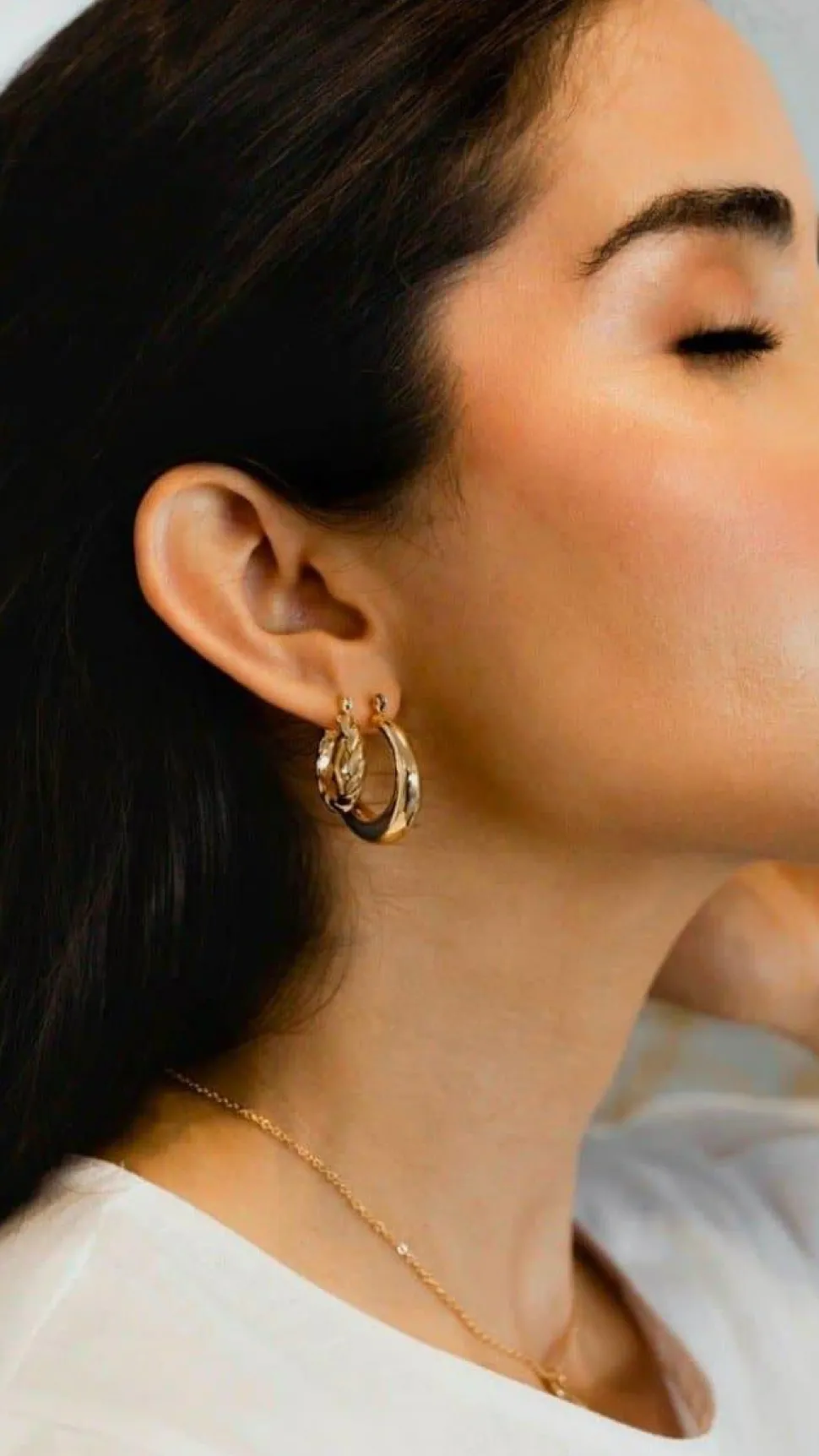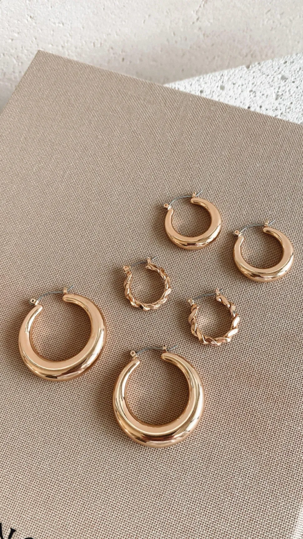 The classic hoop set is all a girl needs – consists of a mini hoop with twist detail and two larger staple chunky hoops