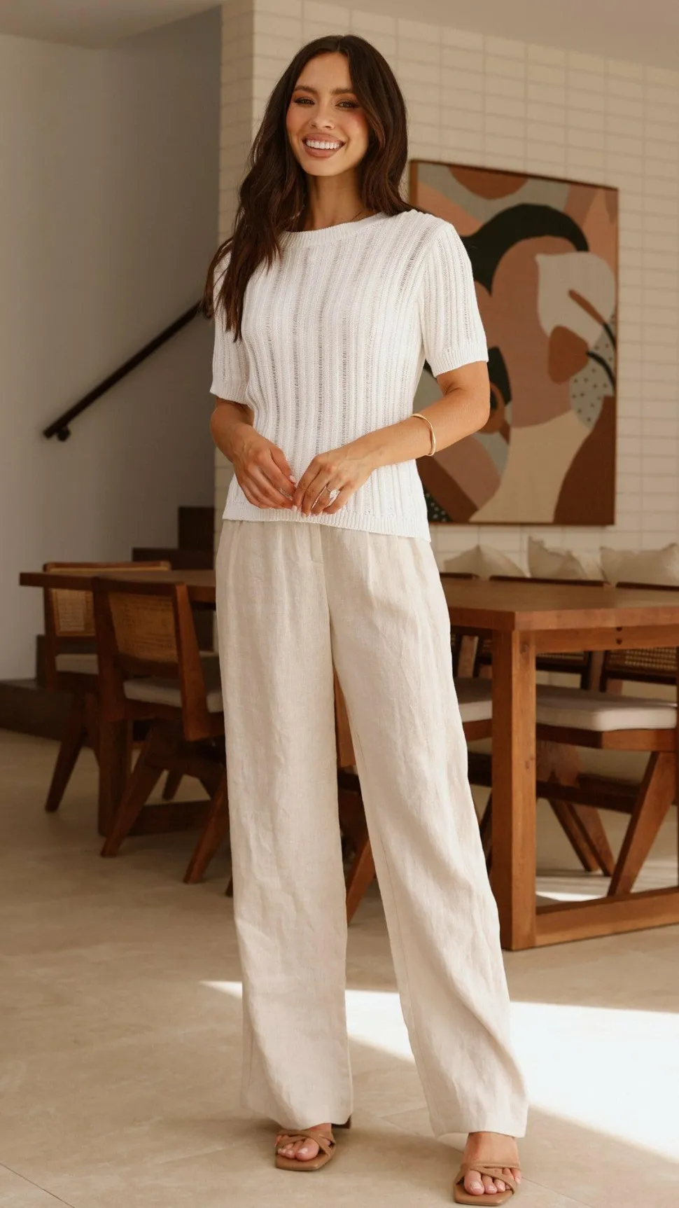 Get the look! Tillie Pants – Oatmeal & Yazmin Heel 2.0 – Frappe