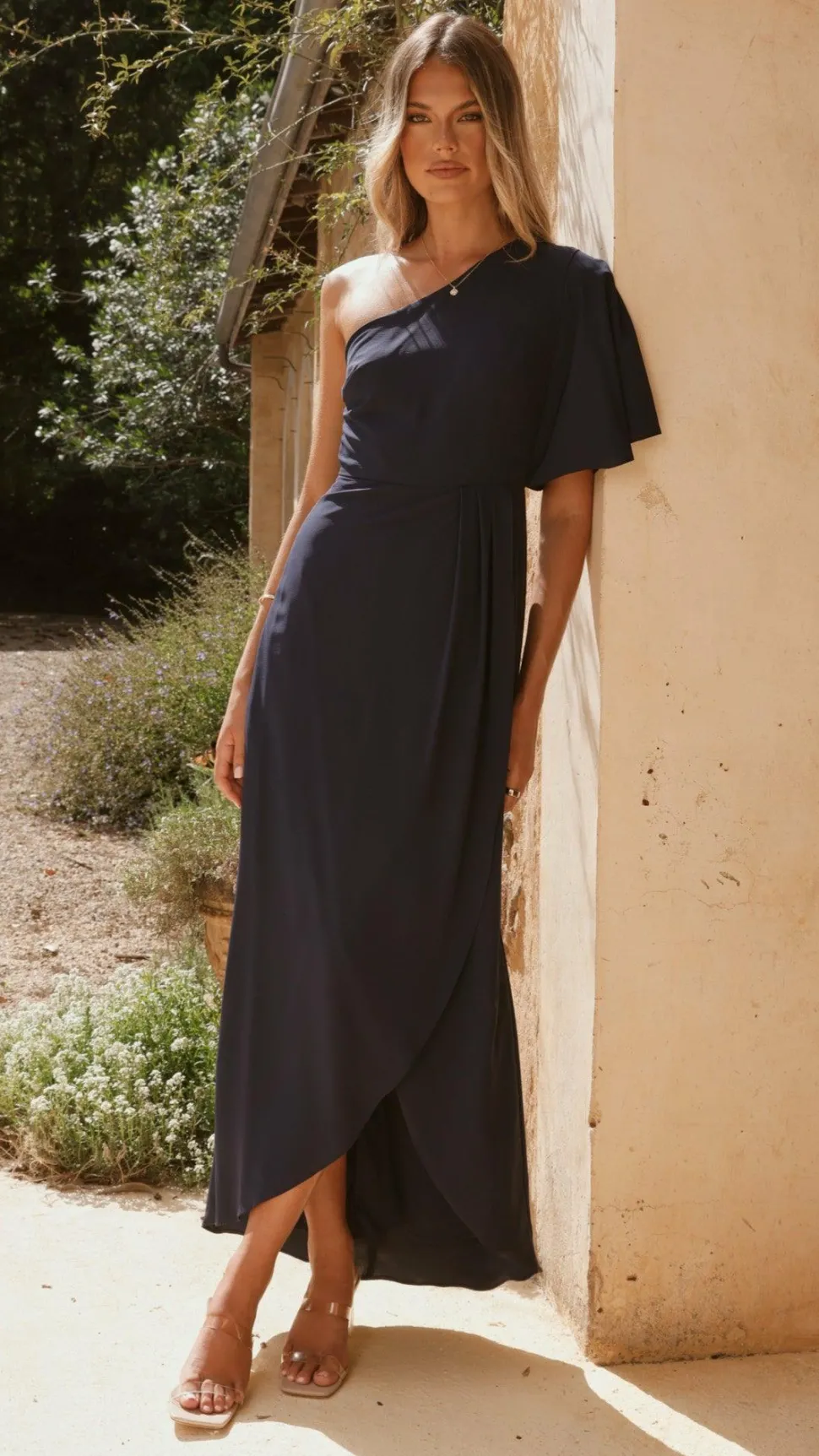 “Want to mix and match dresses? The following styles match this colour:” Charlize Maxi Dress – Navy, Charlotte Draped Maxi Dress – Navy, Clara One Shoulder Maxi Dress – Navy, Emma One Sleeve Maxi Dress – Navy, Genevieve Boat Neck Maxi Dress – Navy, Pamela V Neck Maxi Dress – Navy