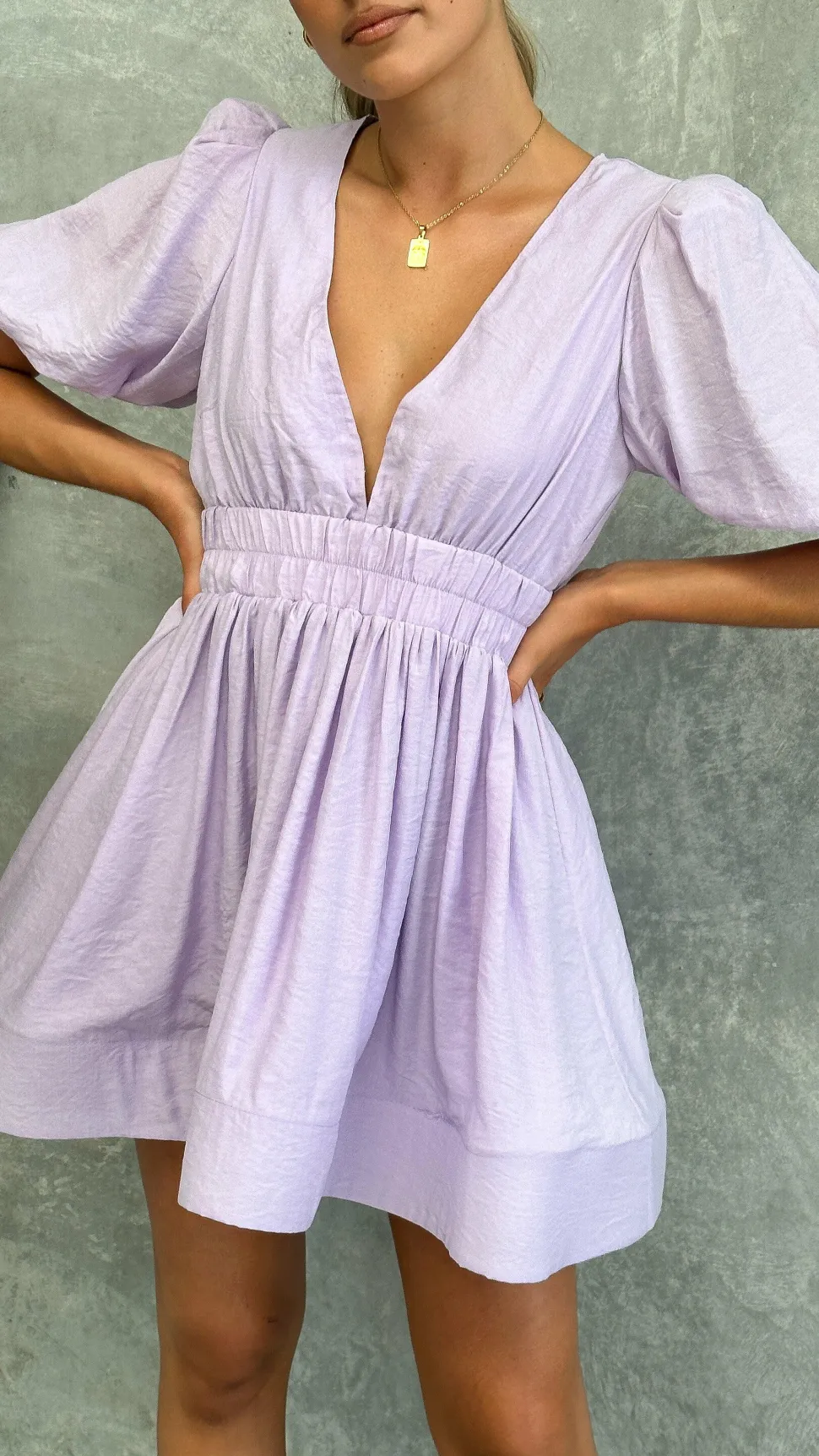 – Deep V neckline