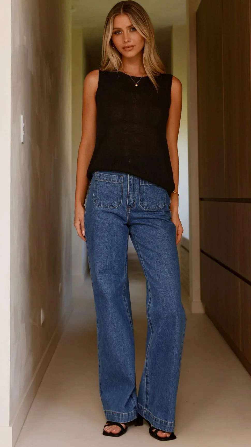 Crafted from soft knit fabric, this tank top features a refined crew neckline and a delicately semi-sheer design for an understated, elegant appeal.
