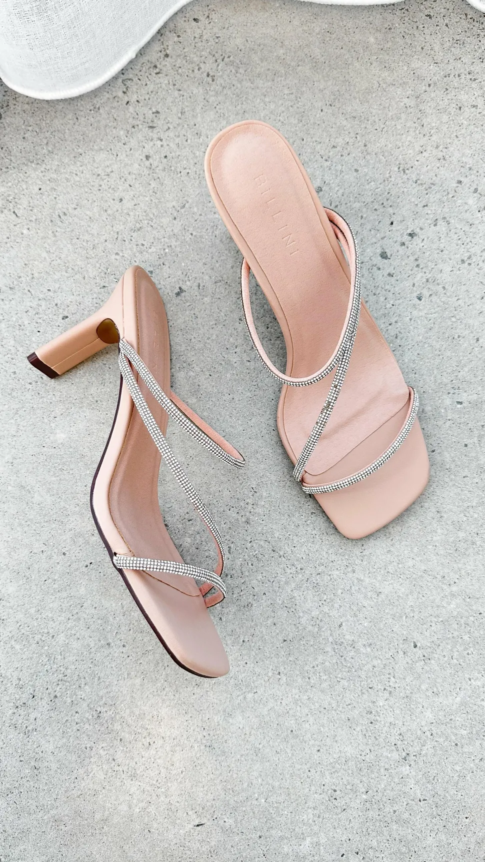 Bring an element of glam to your next evening event with these wearable block heel mules.