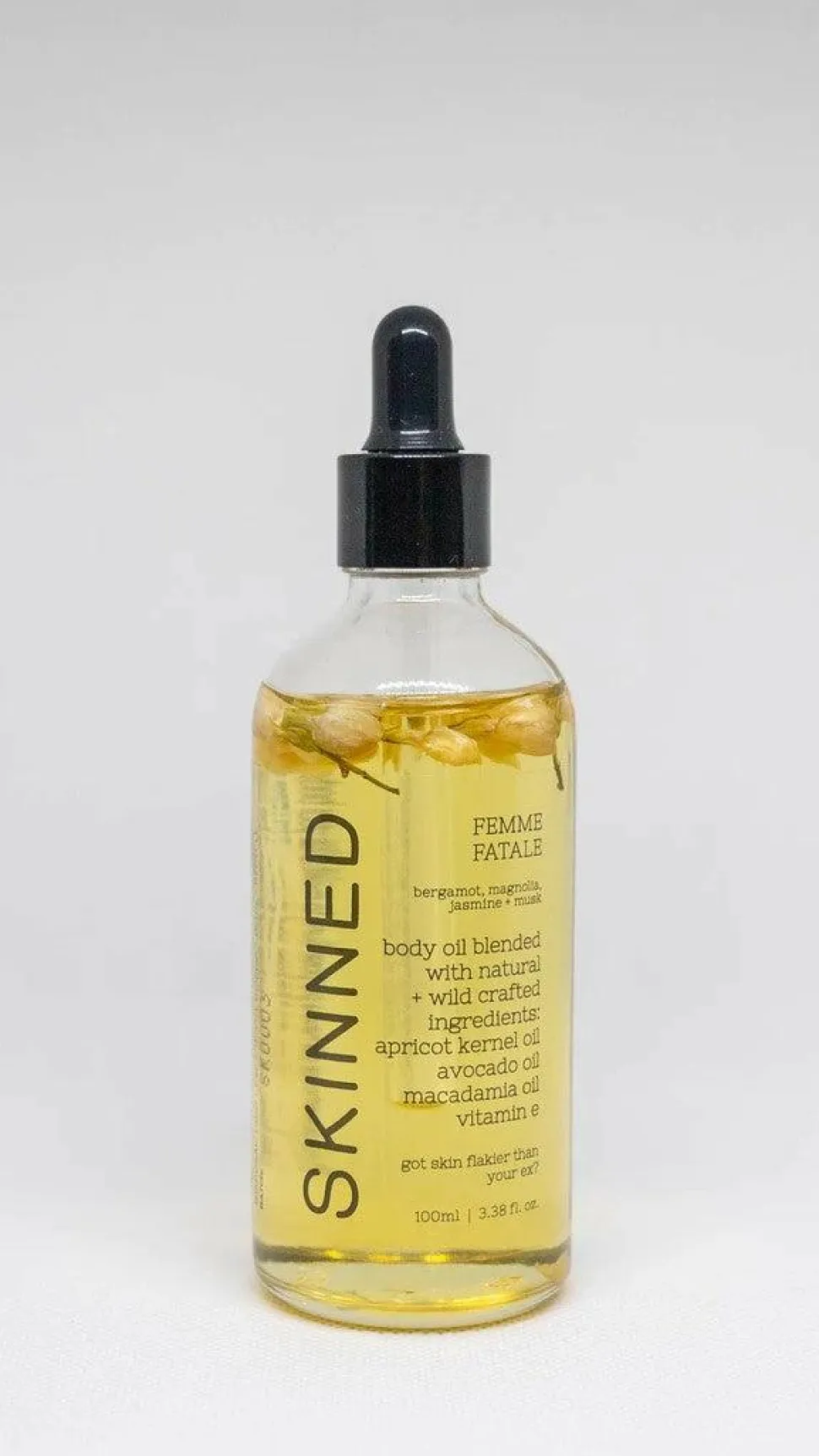 You may have mastered your skin care regime, but don’t forget the rest of your body! Our scented body oils take moisturising from a chore to a full-blown experience. Supercharged with a litany of plant-based oils and vitamin E, our moisturising oils prove time and time again to be the ultimate head-to-toe multitasker. While traditional body lotions, moisturisers and creams will keep your skin hydrated, our scented body oils provide that extra hit of moisture that your skin craves. Get ready to take your daily skincare ritual to the next level with Femme Fatale Body Oil as it ticks all of the boxes; non-greasy, fast-absorbing, and a lush AF scent.