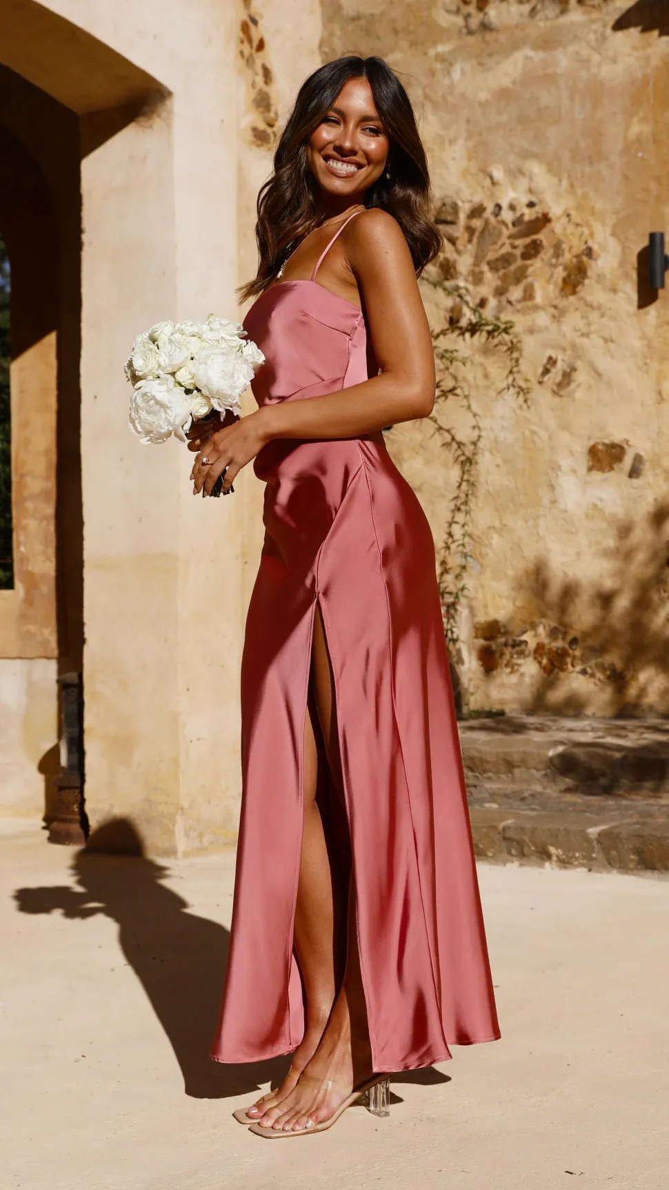 All eyes on you in our Ilana Maxi Dress. This simply elegant dress features a straight neckline, thin adjustable straps, leg split and subtle pleat detailing on waist. This style pairs beautifully with nude heels and dainty jewellery to achieve a beautifully finished look.