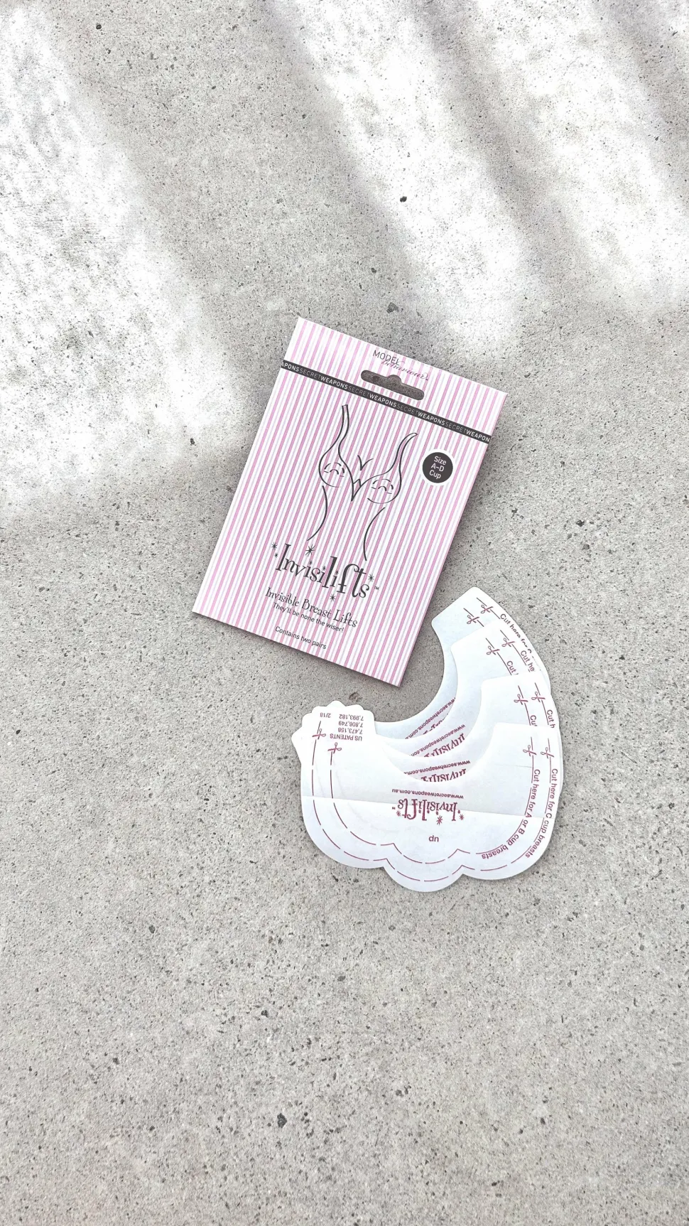 Invisilifts can be trimmed to size from A cup to D cup, or left whole for maximum breast lift. But lift like this doesn’t come easy, so Invisilifts are for one use only!