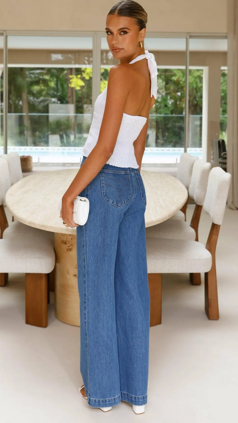 Get the look! Yazmin Heel – White & Rollas Sailor Jean Long – Ashley Blue