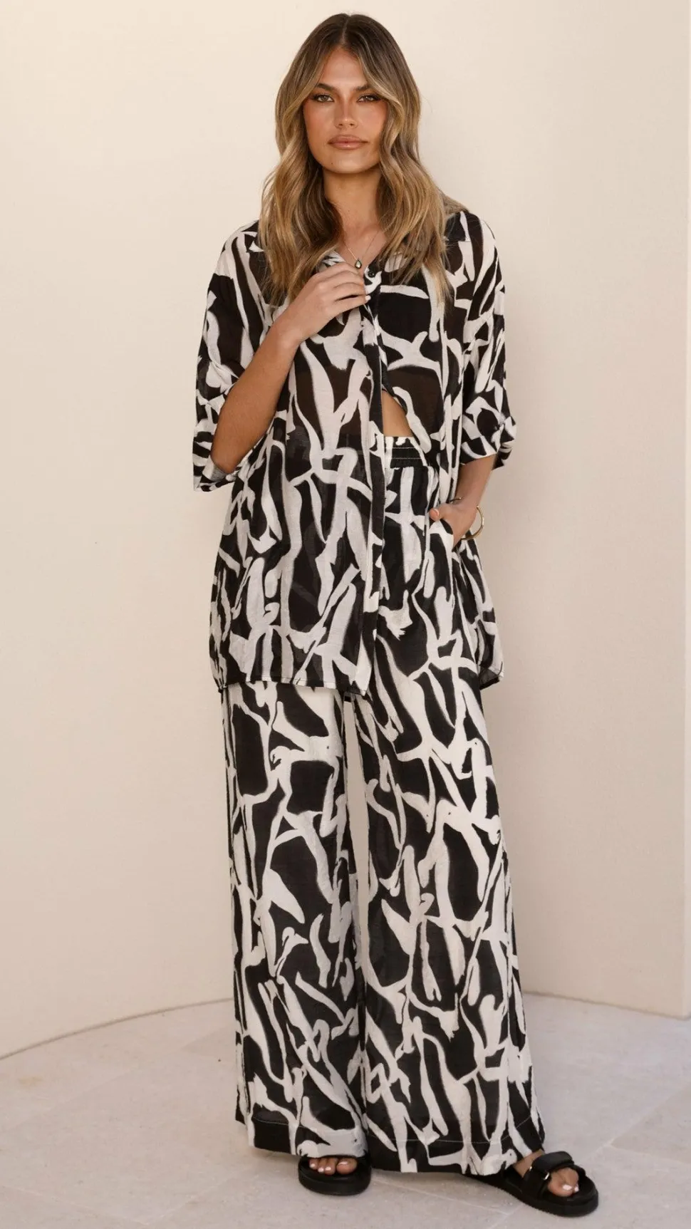 Get the look! Ellis Button Up Shirt – Black/White & Amylee Slide – Black