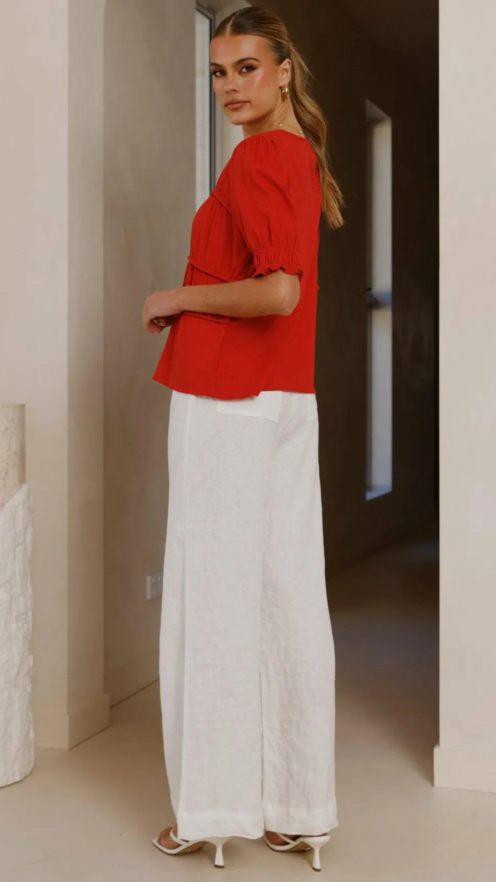 Get the look! Xami Heel – White & Karah Pants – White