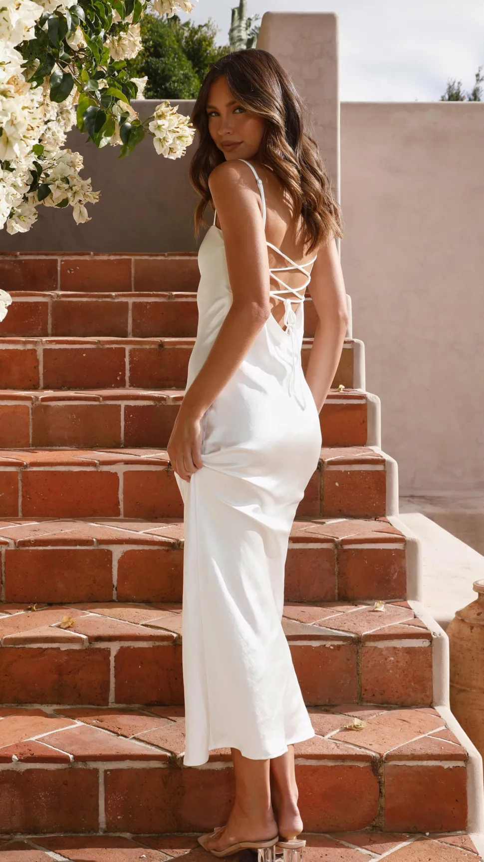Our Keira Maxi Dress is an elegantsophisticated style with a classical straight neckline and gorgeous adjustable crossed back design. This classical design makes it a must have for your next cocktail eventand oh so easy to style.