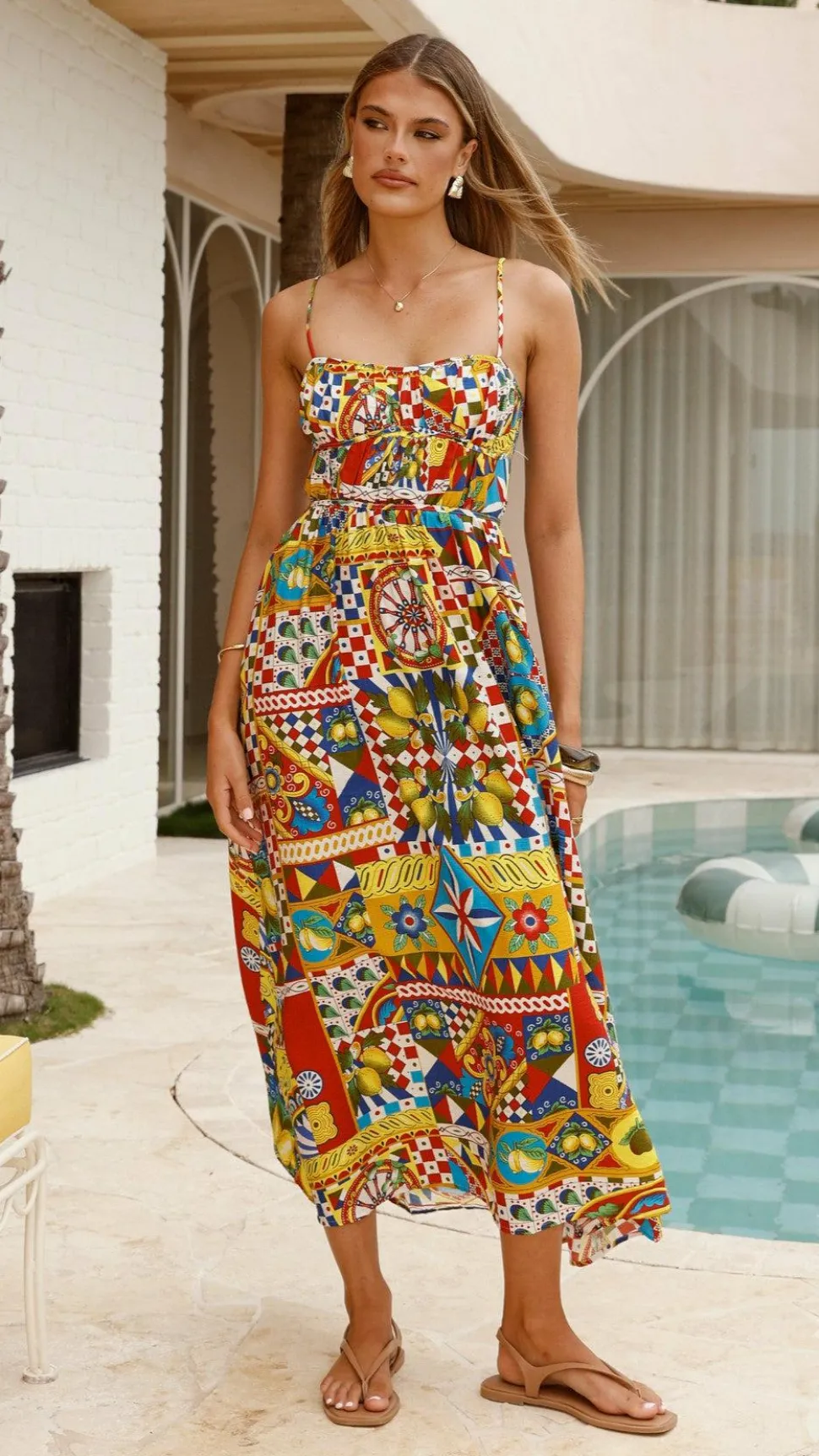 Our Kelani Luxe Midi Dress features a feminine sweetheart neckline, under bust and waist seam details and ruching. In our European inspired print, this will be perfect for the summer season.