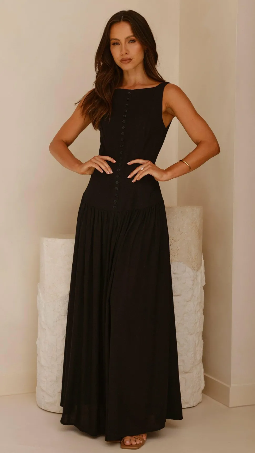 – Fitted dropped waist