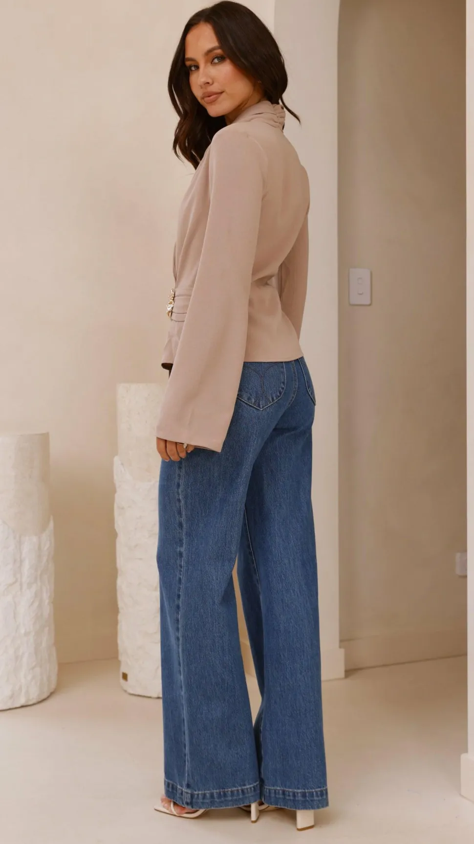 Get the look! Rollas Sailor Jean Long – Ashley Blue & Jamaya Heel – Nude