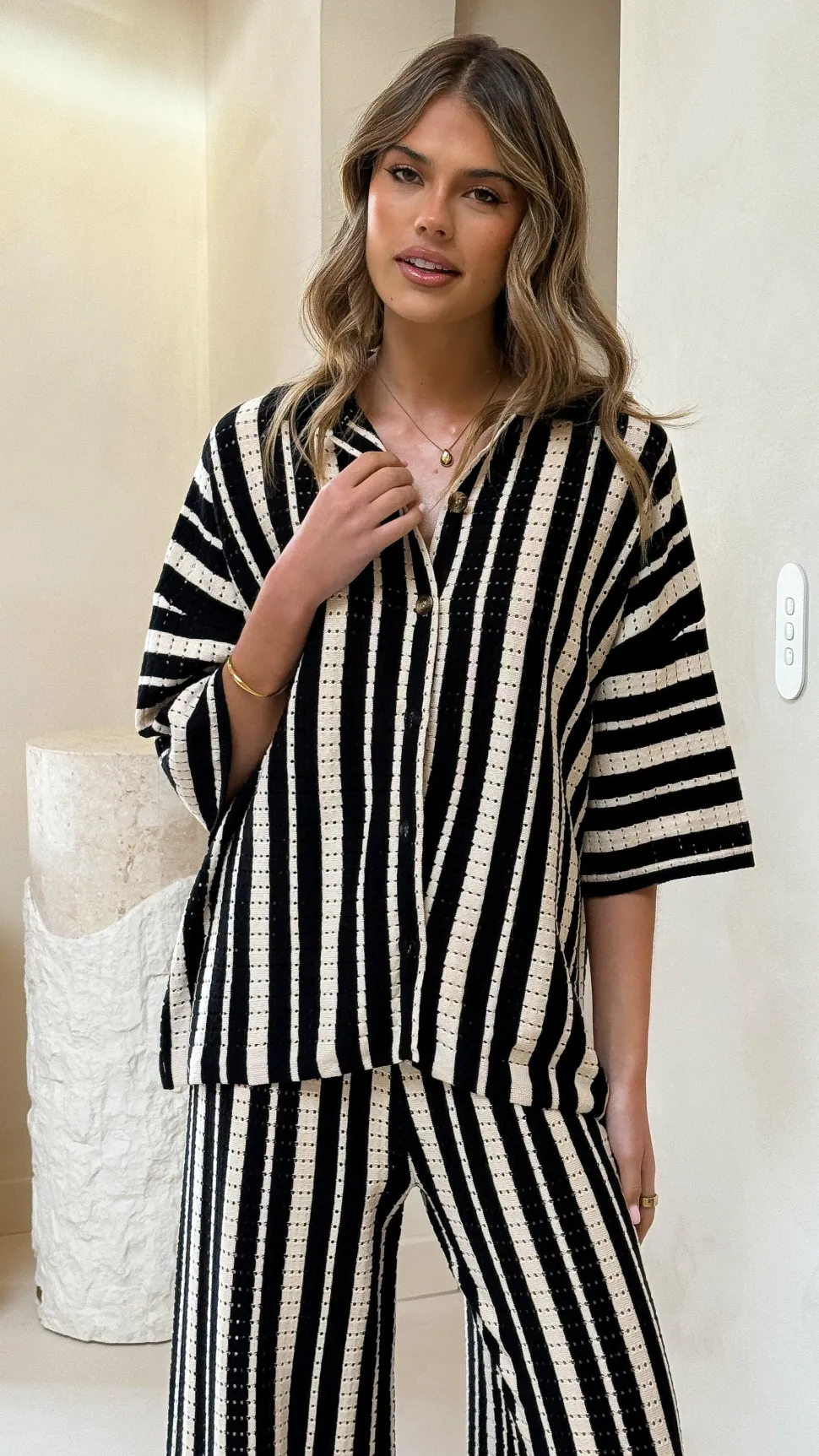 Get the look! Layla Knit Wide Leg Pants – Black & Amylee Slide – Black
