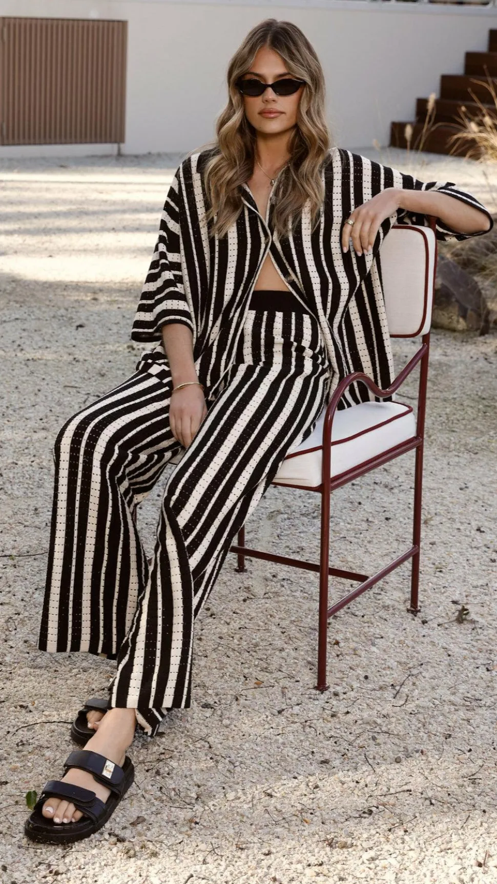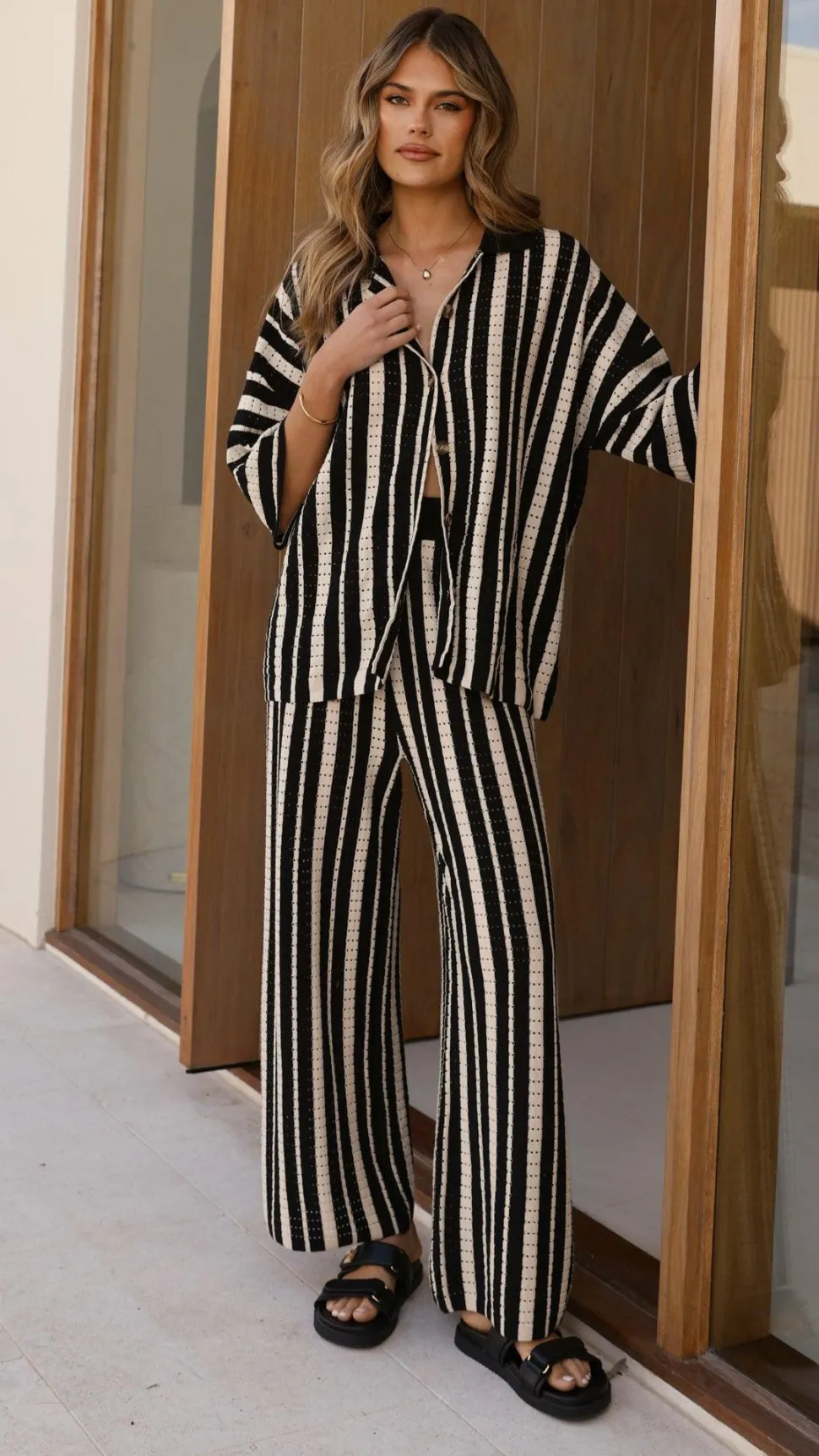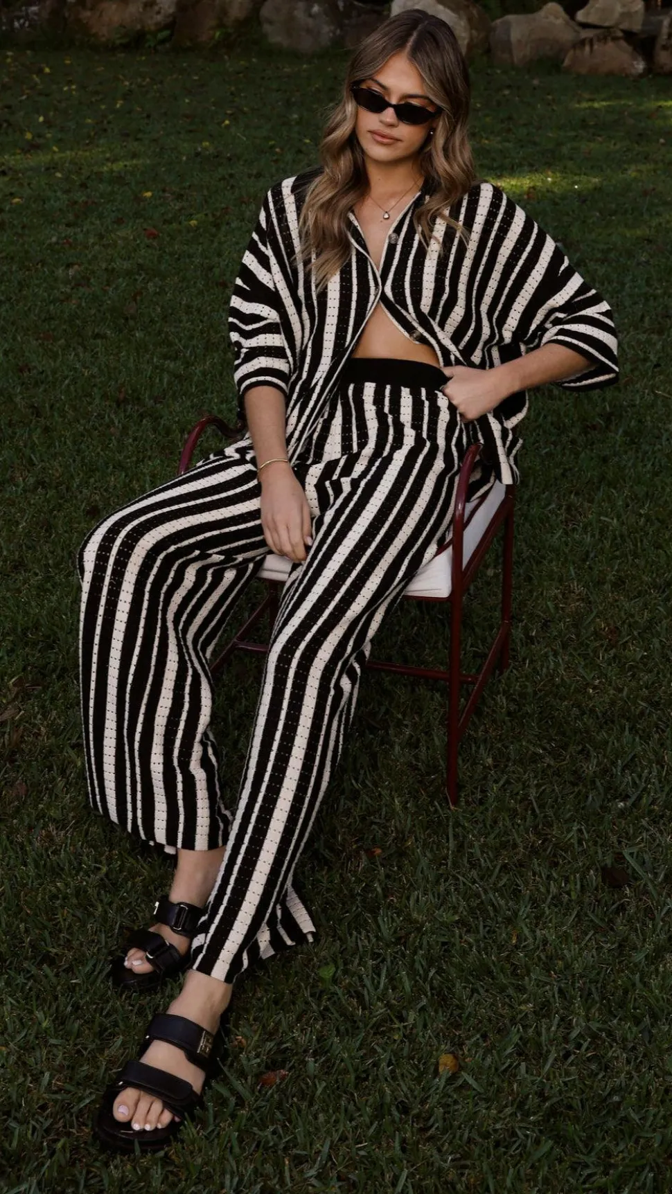 Get the look! Layla Button Up Knit Shirt – Black & Amylee Slide – Black