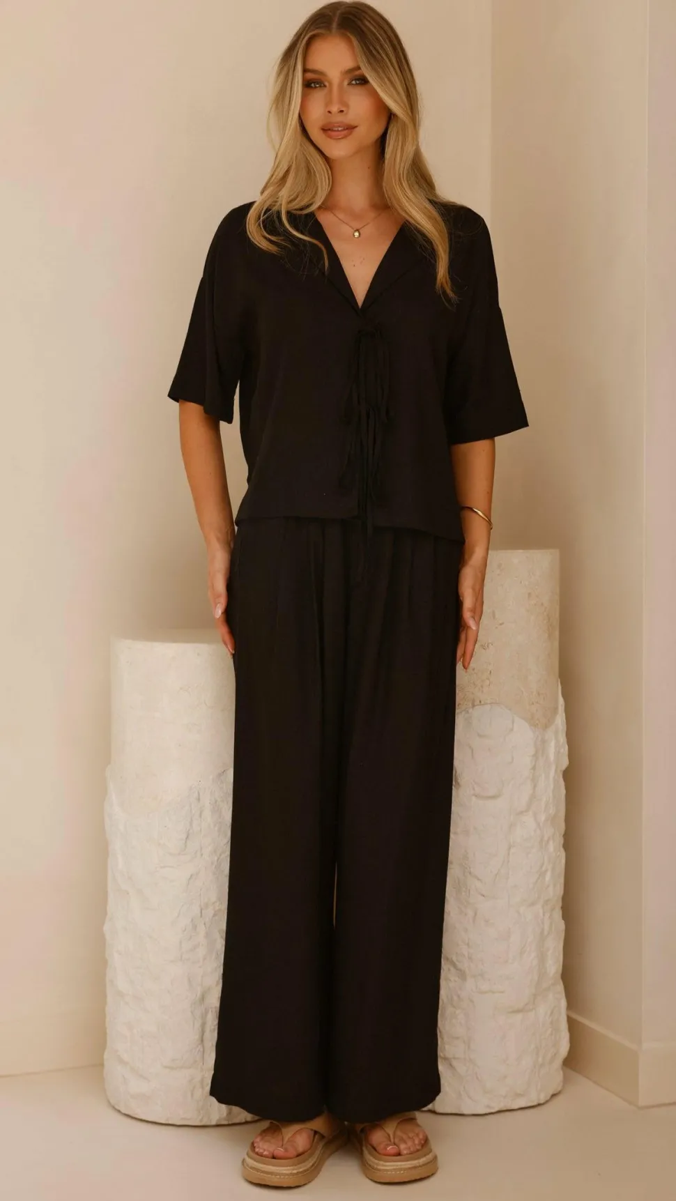 Get the look! Amaya Slide – Clay & Louise Top – Black