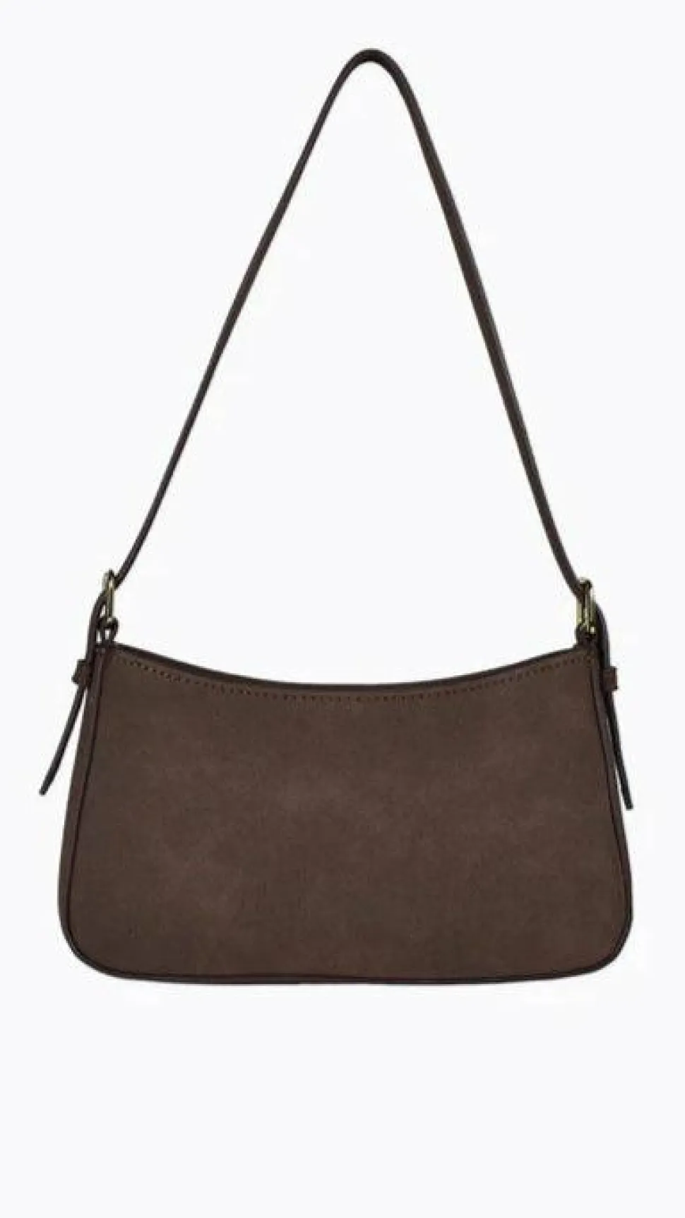 – The bag features a fixed, adjustable shoulder strap with buckle detail and gold hardware.