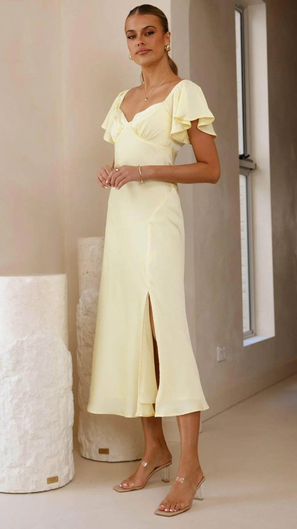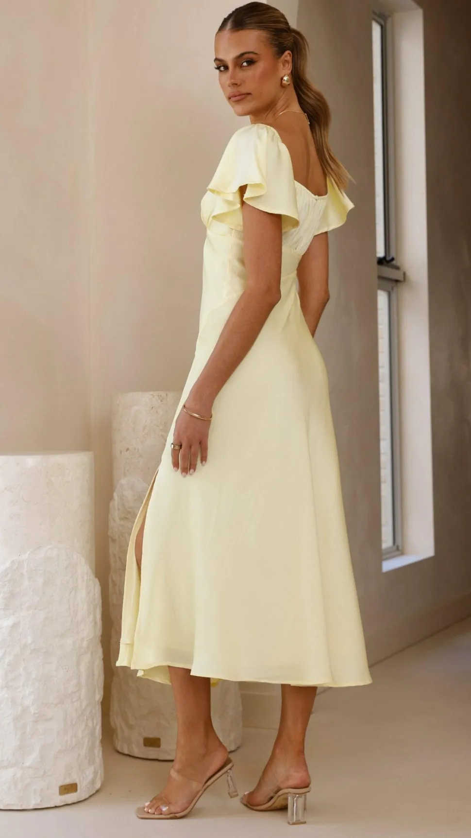 Our Louisa Dress features beautiful butterfly sleeves, flattering off shoulder design, pleated bust and a flirty front slit. This beautiful floaty design takes elegance to the next level you’ll be sure to turn heads in this number.