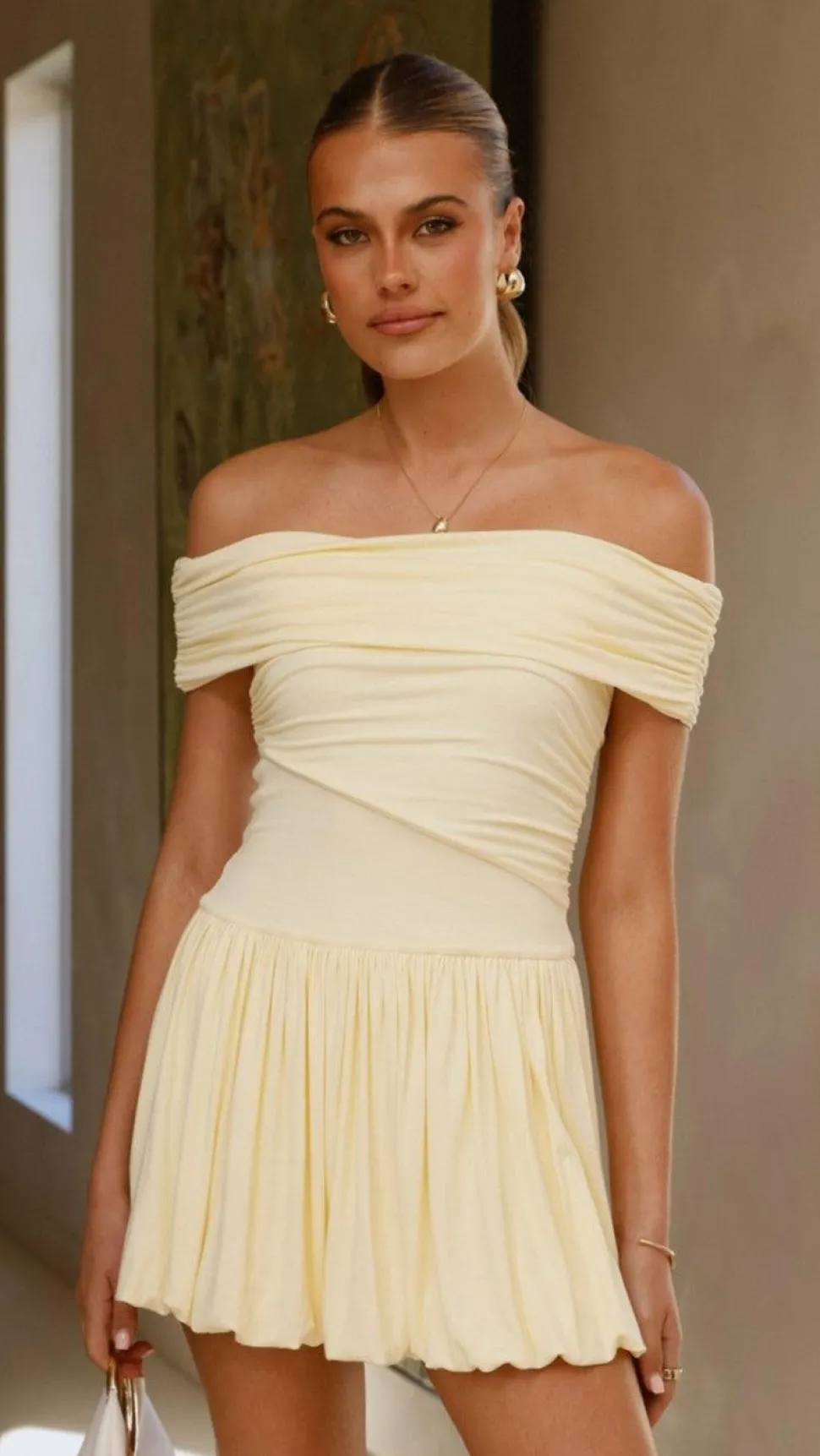 – Off the shoulder design