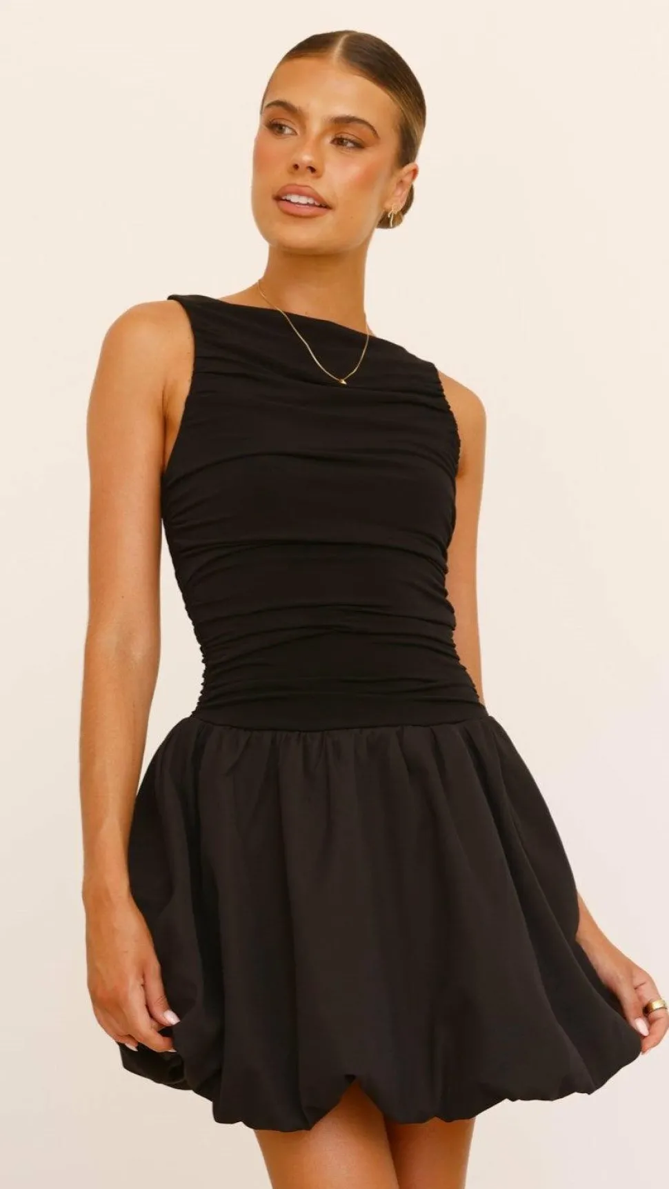 – Side rouching detail in top