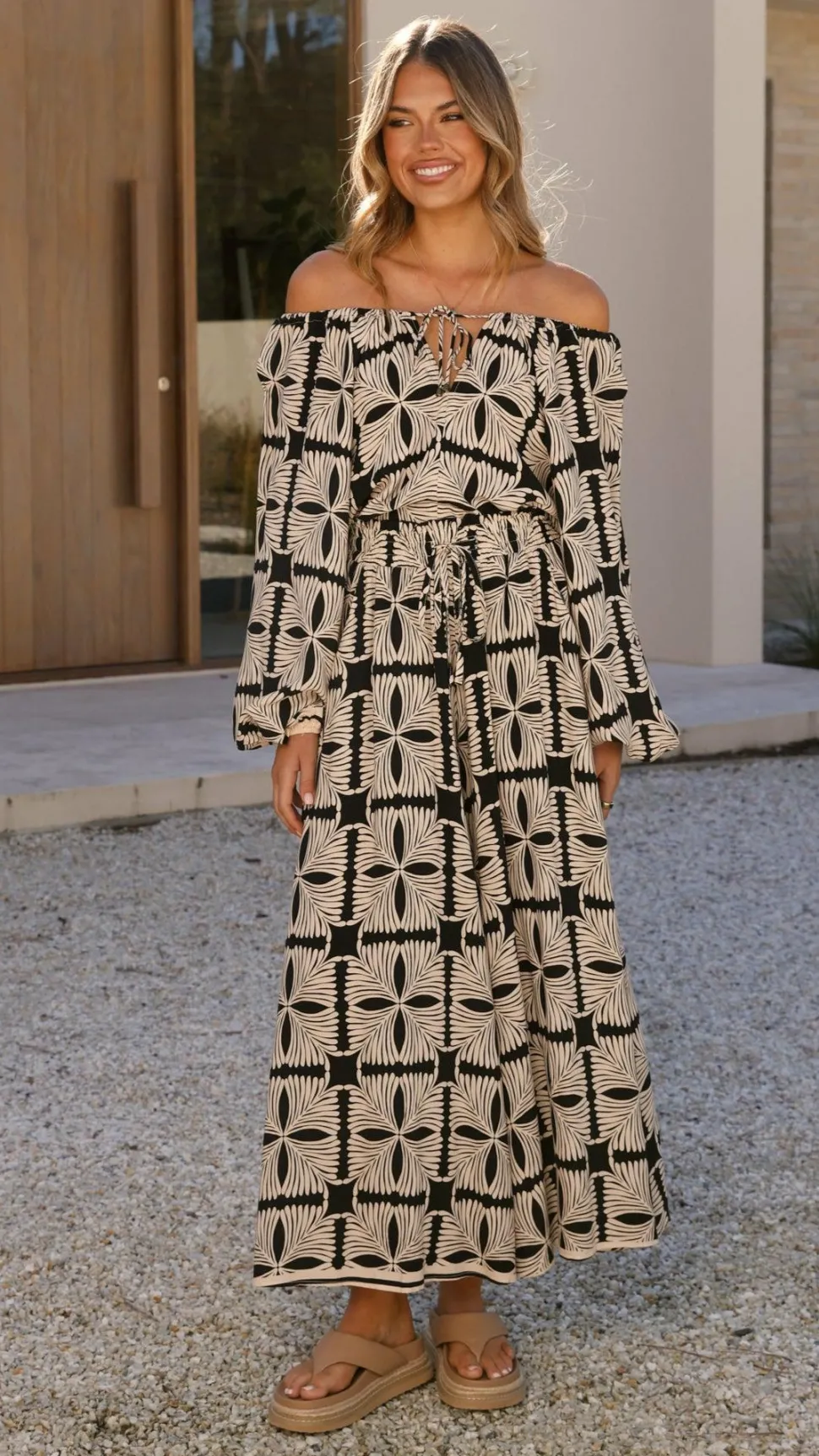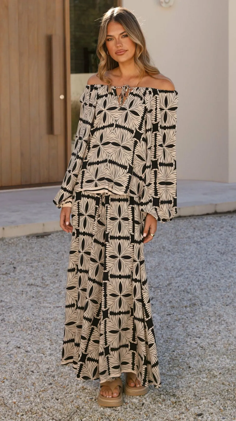 Get the look! Belinda Pants – Cortana Print &Amaya Slide – Clay