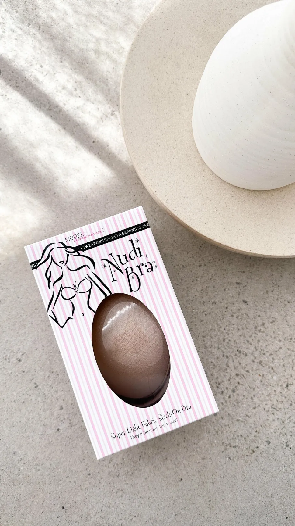 Nudi Bra is an ultra-light, backless, strapless, self- adhesive miracle worker! Totally free from straps and light as a feather, Nudi Bra will give you the ultimate support, lift and cleavage! Using the highest grade medical adhesive, our Nudi Bra provides ultra-reliable staying power!