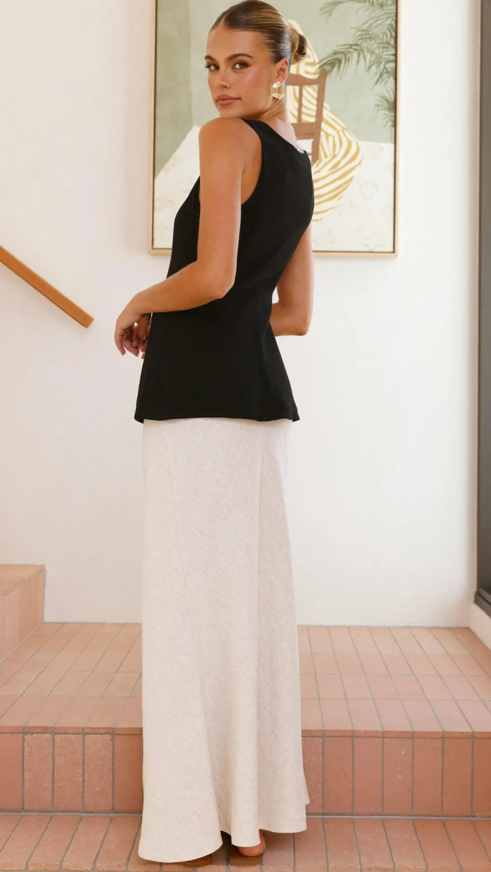 Get the look! Gretal Slide – Tan & Nila Maxi Skirt – Oat