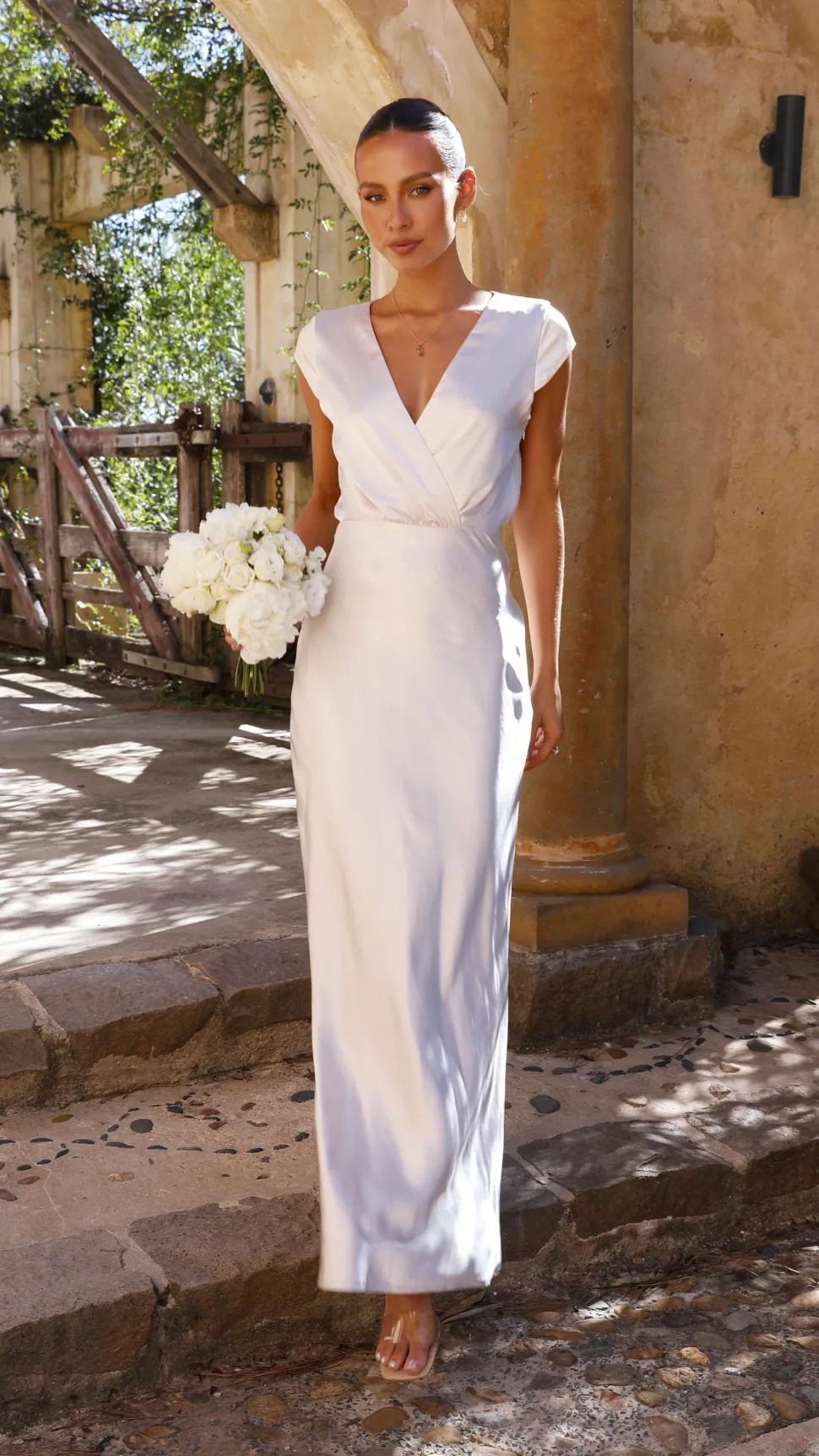 Bring the elegance to your next formal event in the Selma Maxi Dress from our Mon Cheri Collection. This gorgeous mini sleeve maxi with a deep v neckline is sure to make you stand out in a crowd. Complete this glam look with heels and gold jewellery.