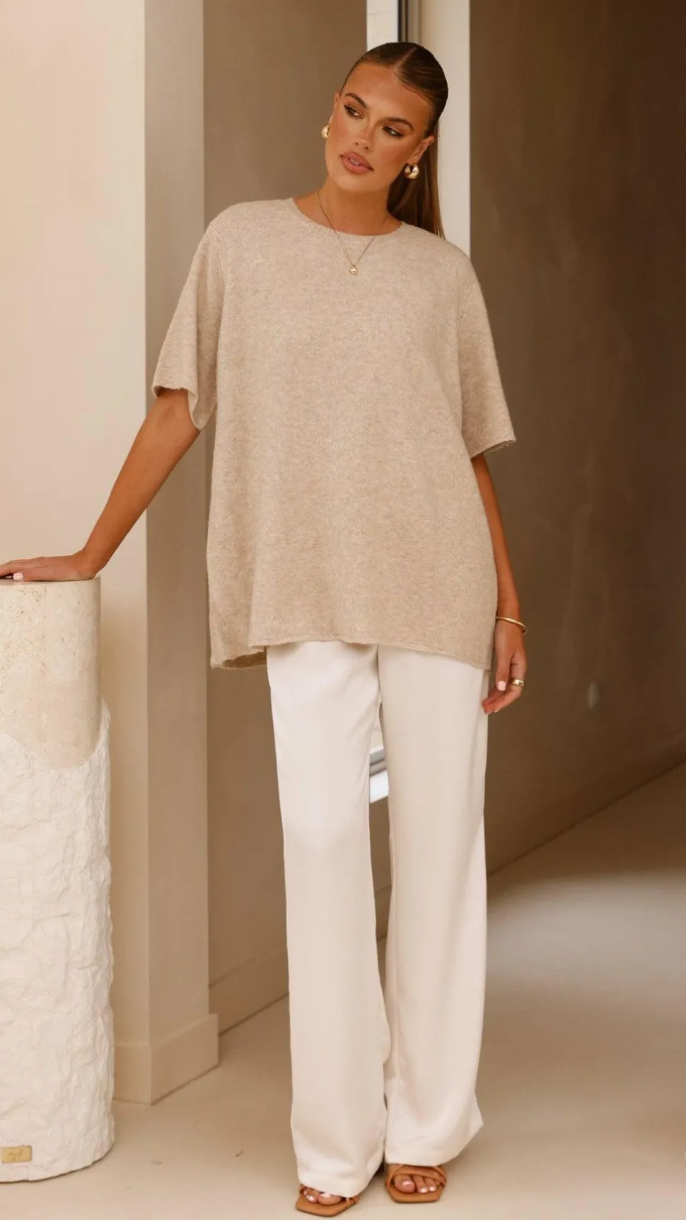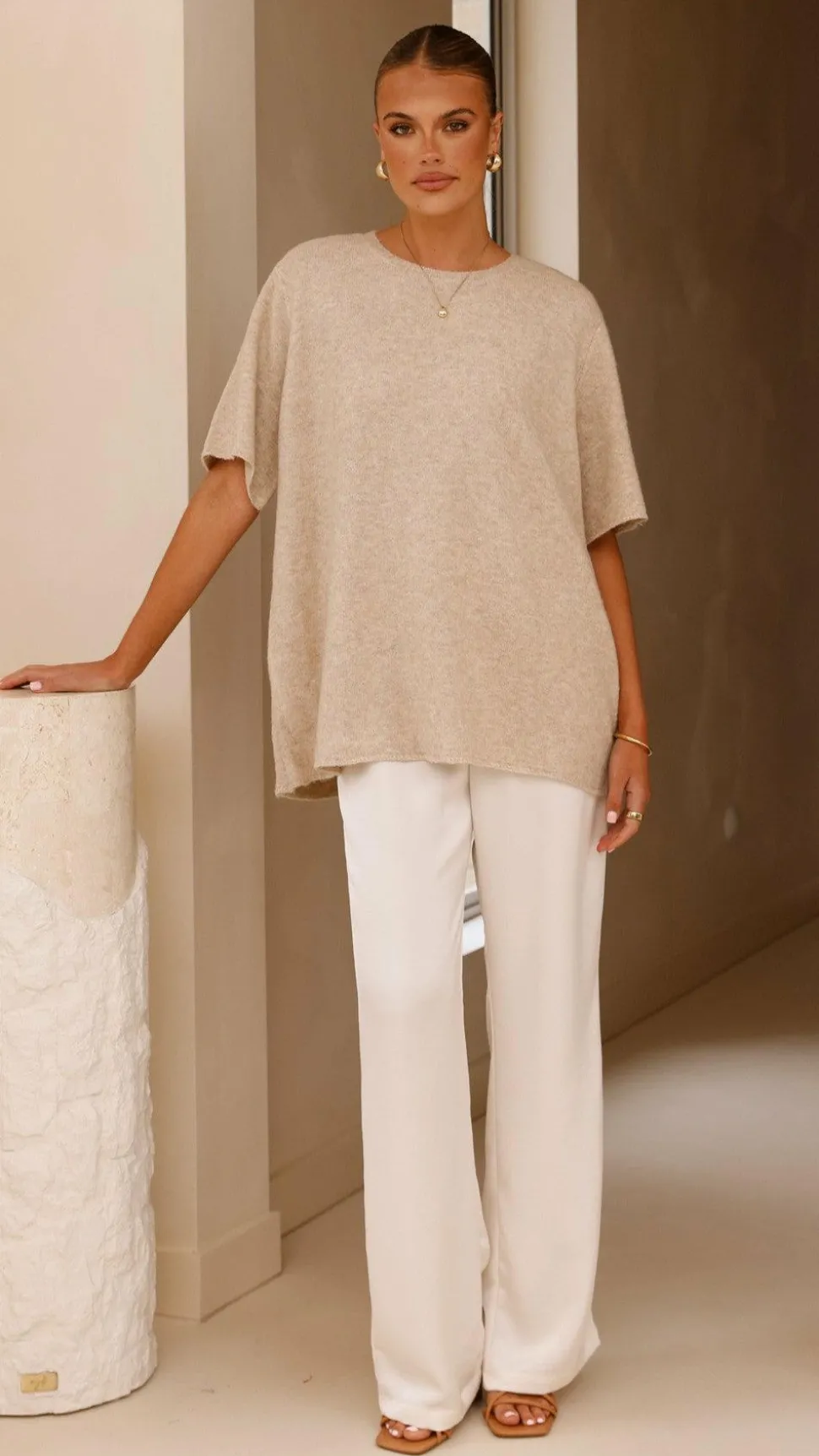 Get the look! Imogen Button Pants – Cream & Unika Heel – Sugar Brown