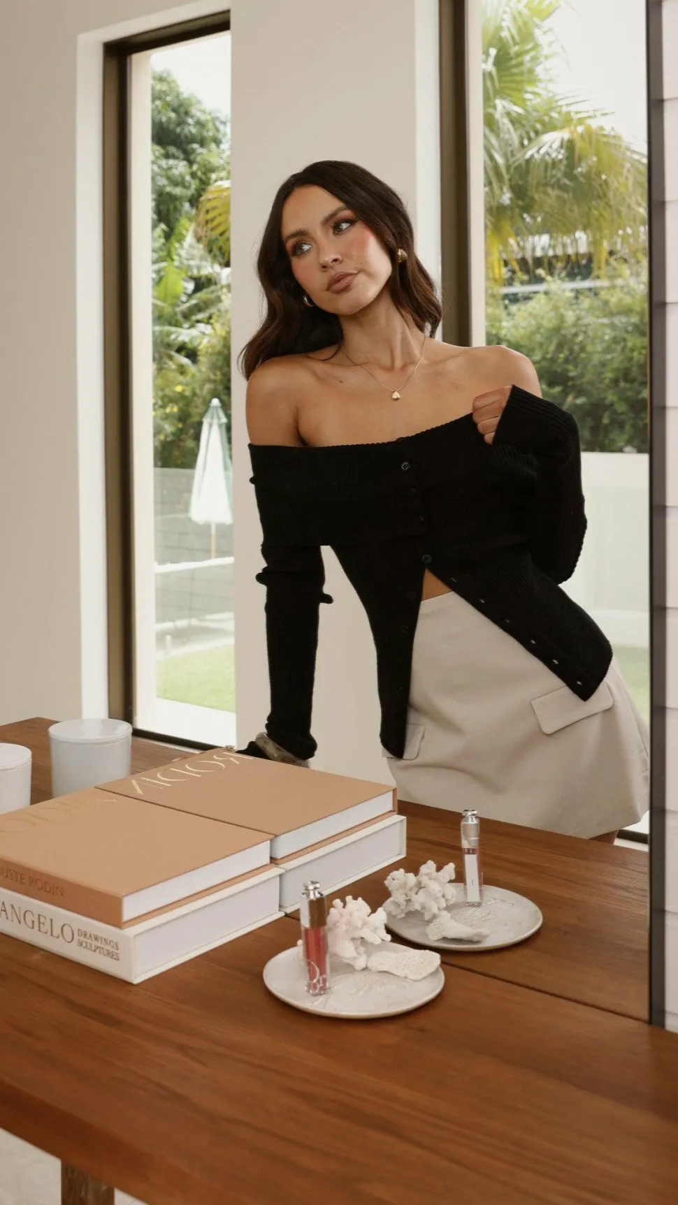 – Off the shoulder design