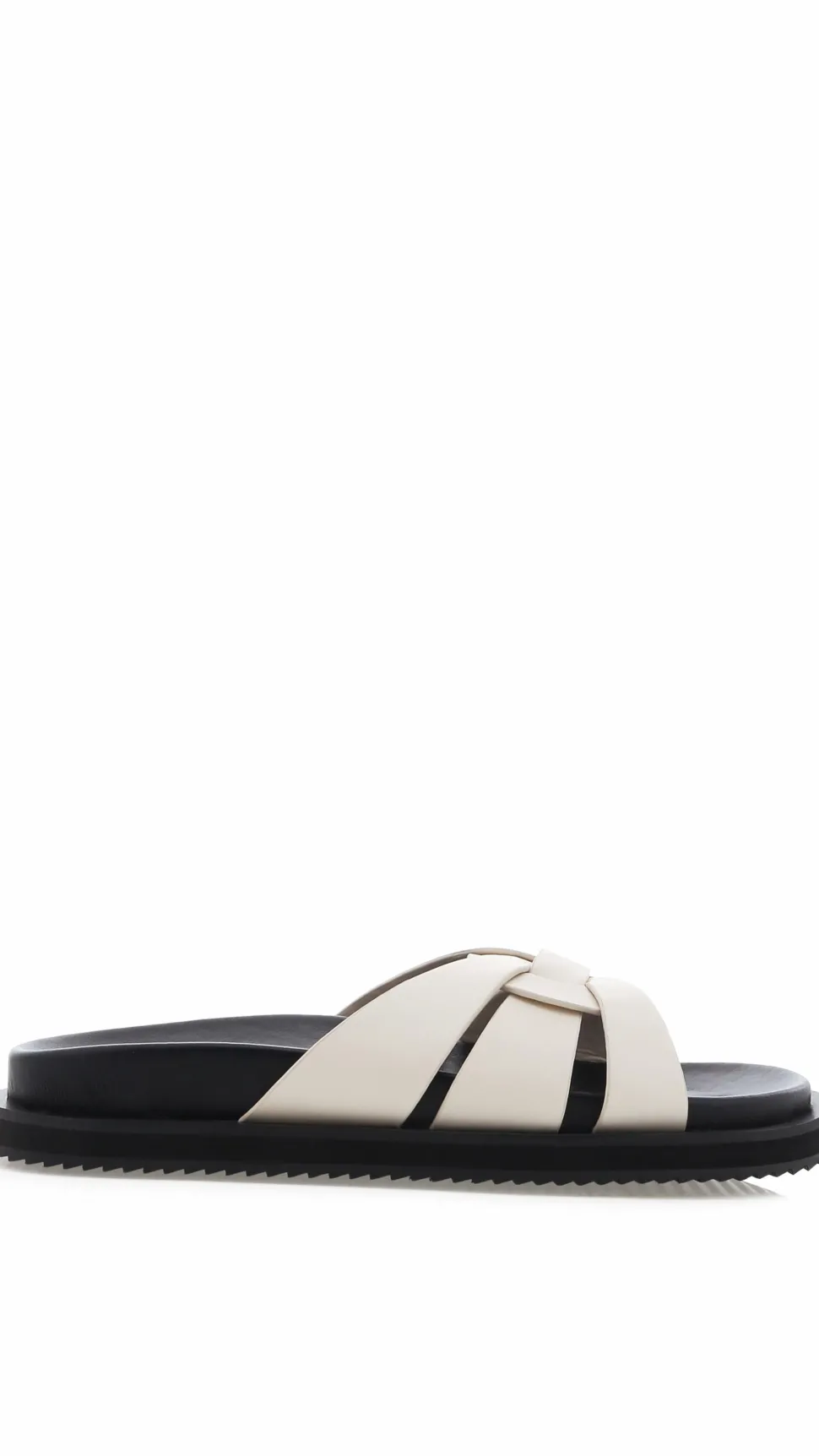 - Woven thick flat strap design on upper