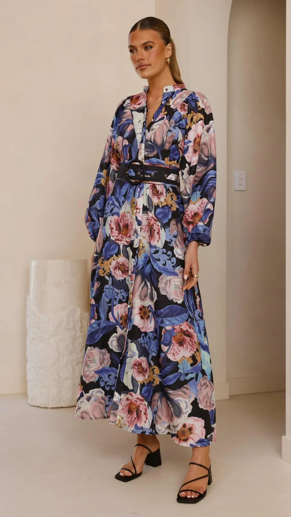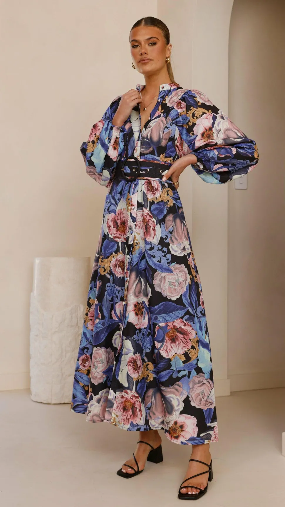 – Long balloon sleeves with elastic cuffs
