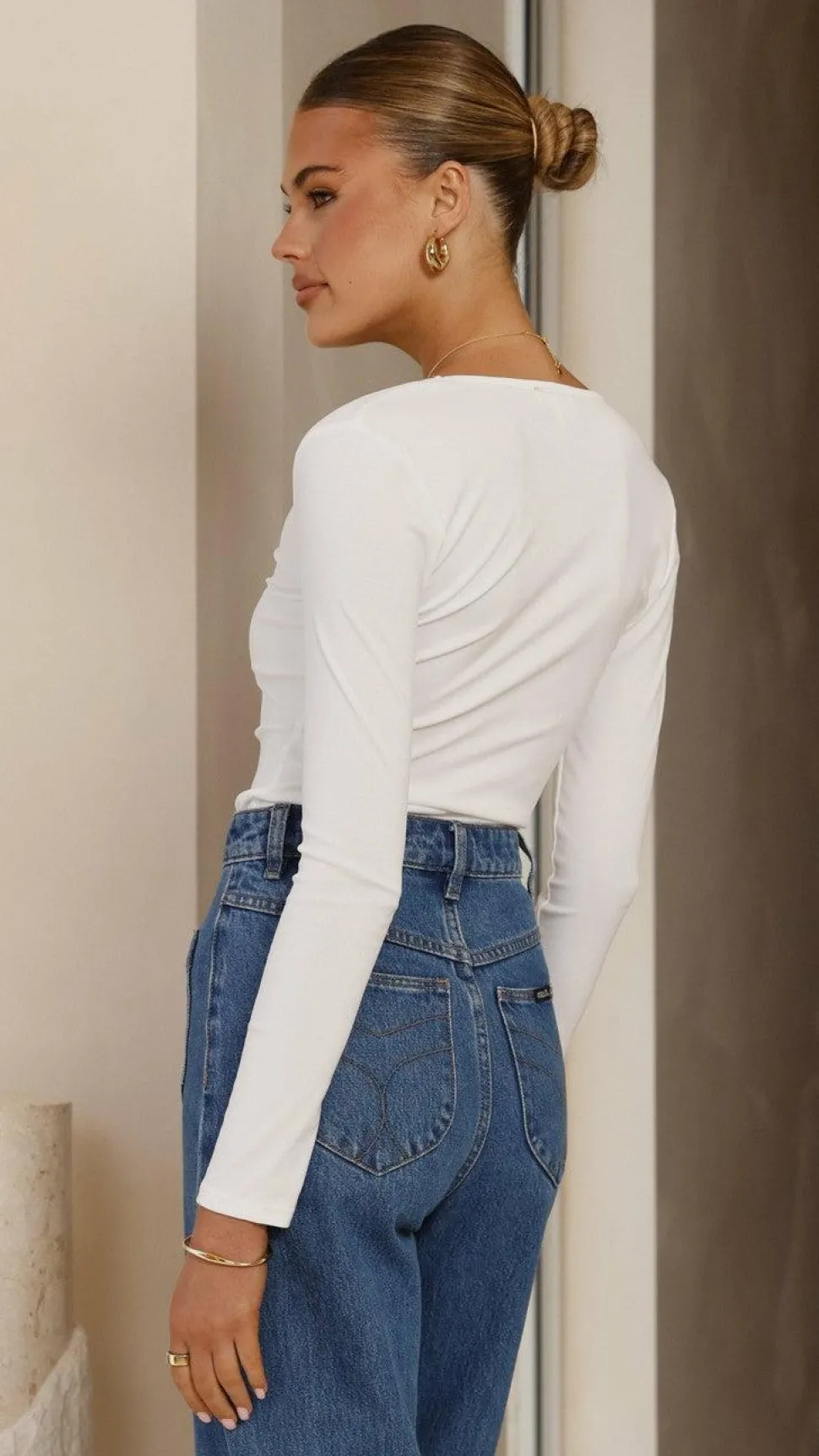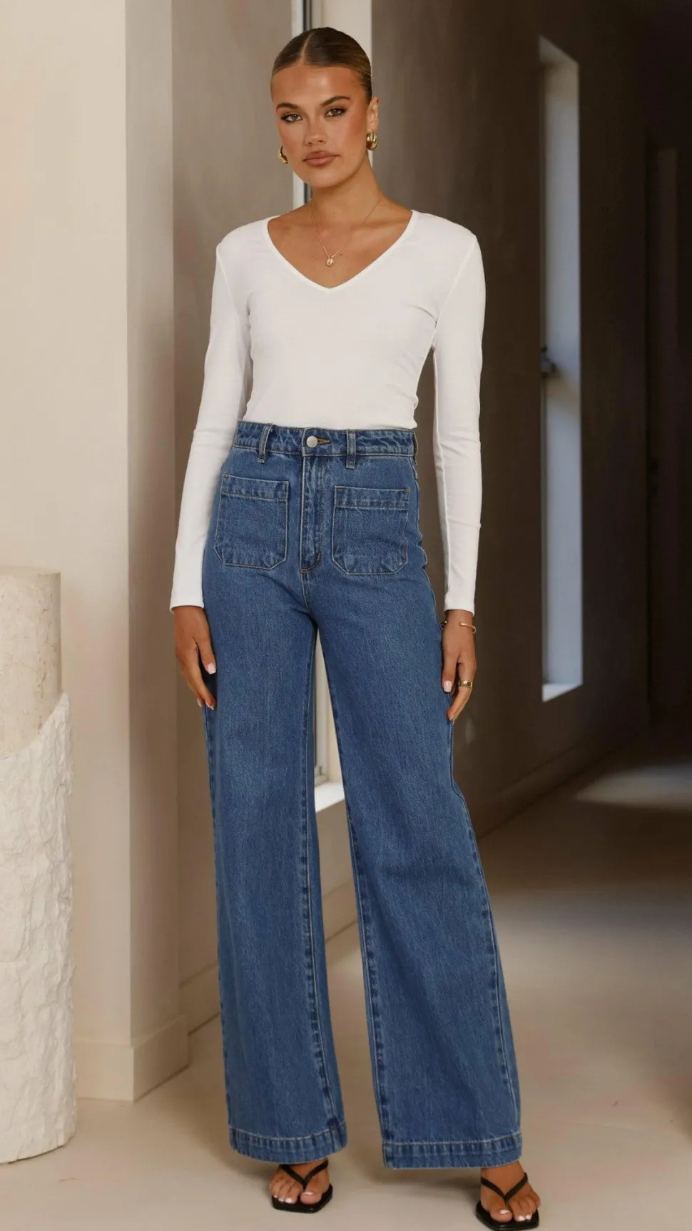 Get the look! Rollas Sailor Jean Long – Ashley Blue & Xami Heel – Black