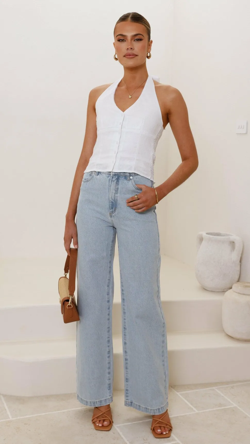 The 94 High & Wide in Kendall is a high rise, wide leg jean, made with a rigid denim. Abrand suggests going up a size.