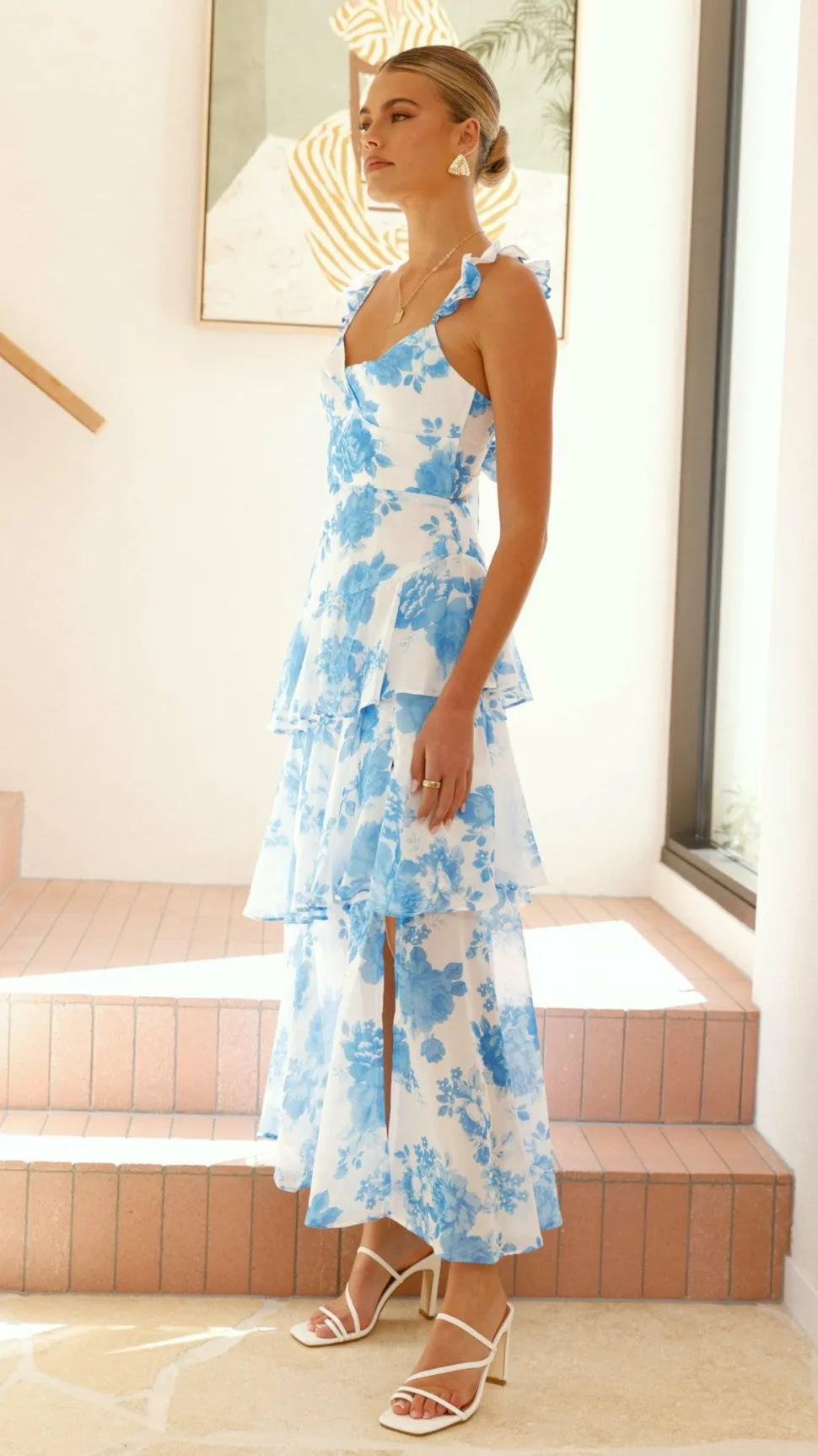 – Adjustable straps with ruffle detail