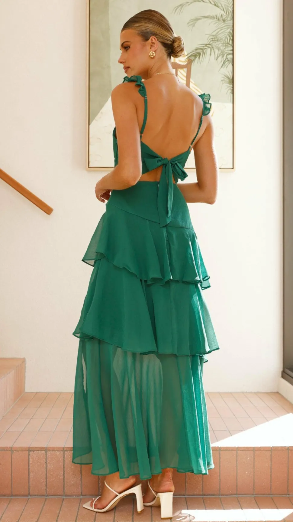 – Adjustable straps with ruffle detail