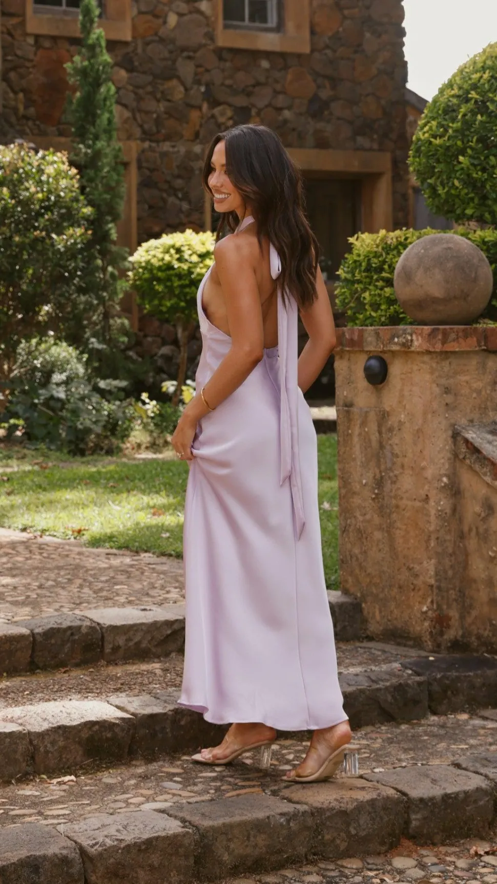 The Amalia Maxi Dress will be a stunning new addition to your wardrobe featuring a halter neck cut out detailing,adjustable neck tie, side slit and an enclosedzipper at the back. Pair it withtheYachi Heels – Nudeand gold jewels for a perfect evening look.