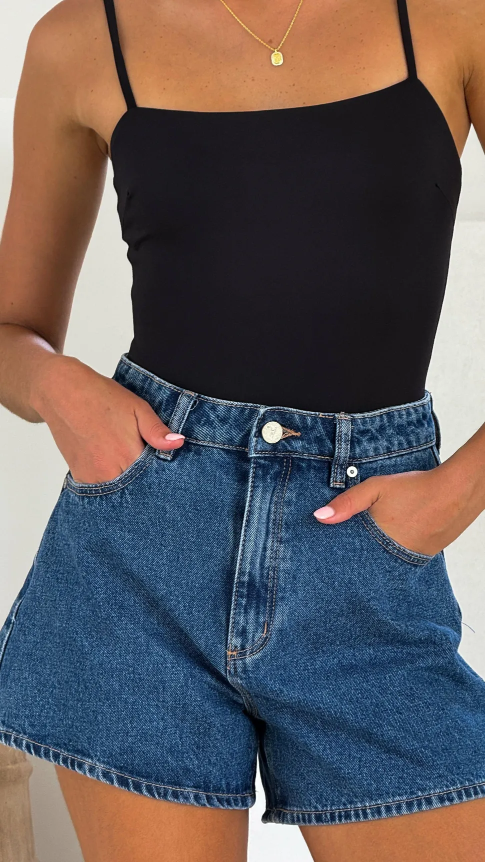 Get the look! Amylee Slide – Black & Abrand Venice Short – Bella