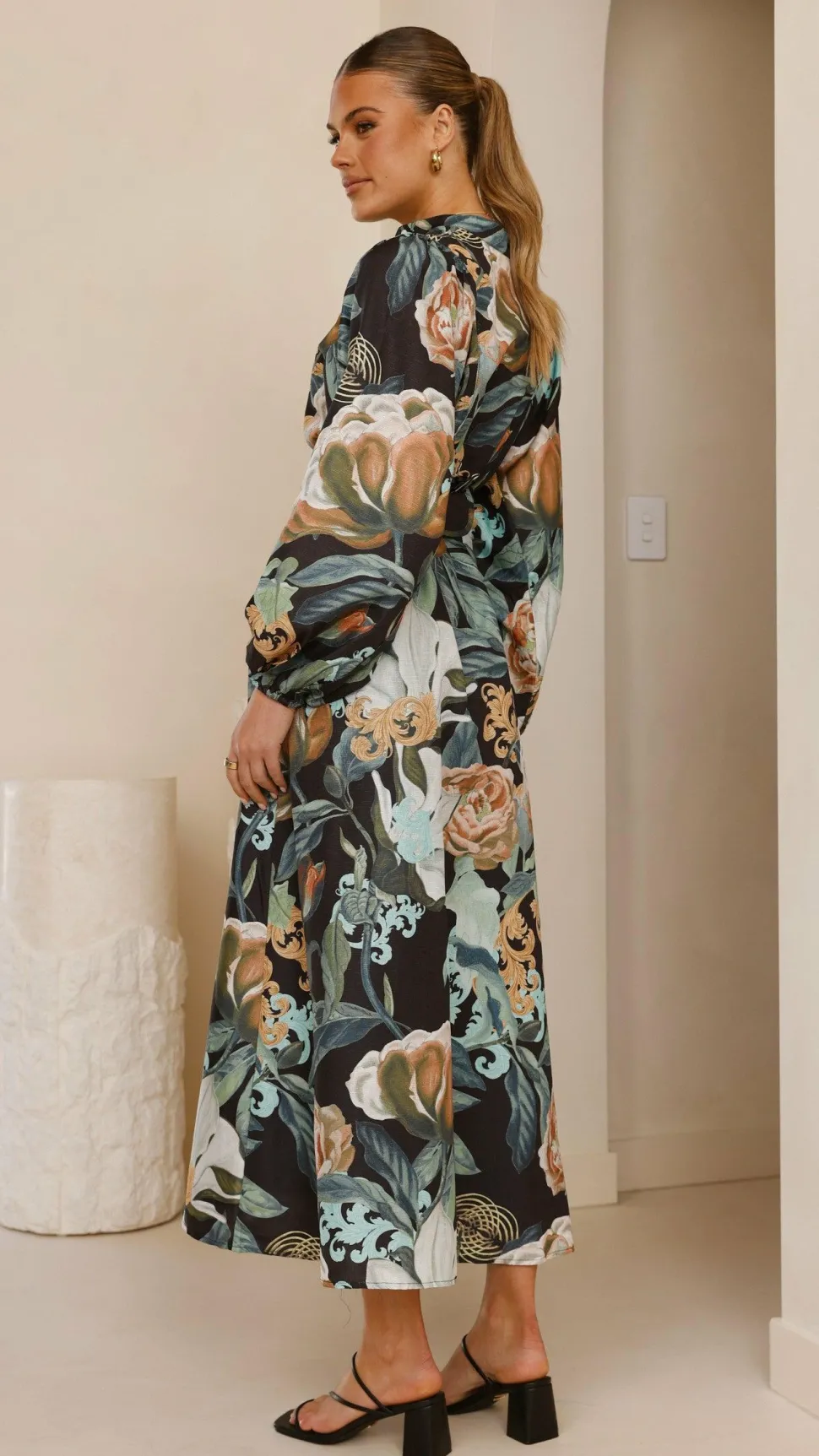 – Long balloon sleeves with elastic cuffs