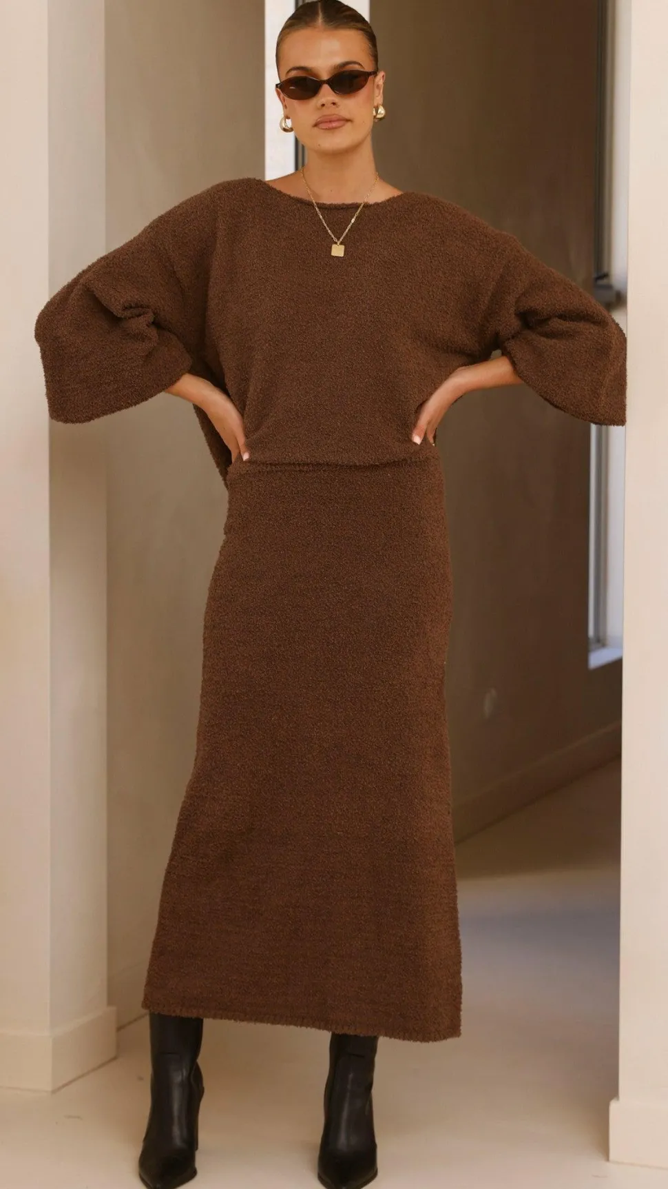 Get the look! Cohen Knit Jumper – Chocolate & Alania Boots – Black