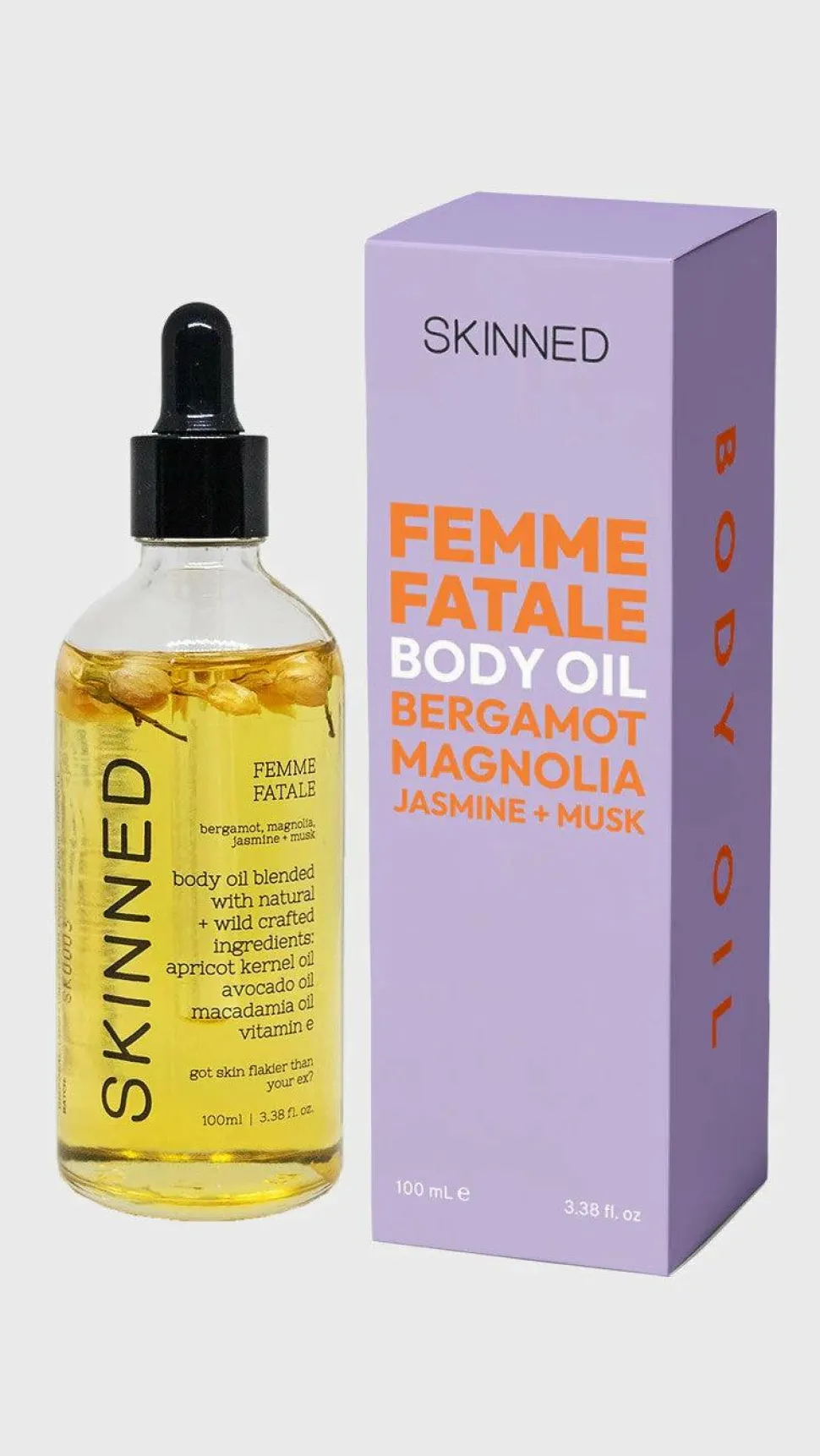 Introducing our newest addition to the range,Femme Fatale. Cute AF and floralled with jasmine bud flowers, this body oil is the most sensuous and seductive blend we have ever released! Warmly scented with the richness of bergamot and magnolia, and finished with the mystical aroma of musk.