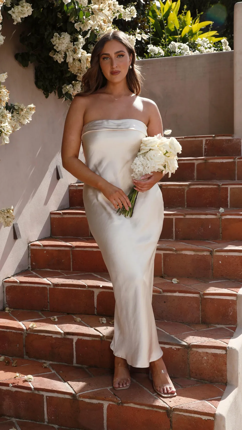 – Strapless maxi design